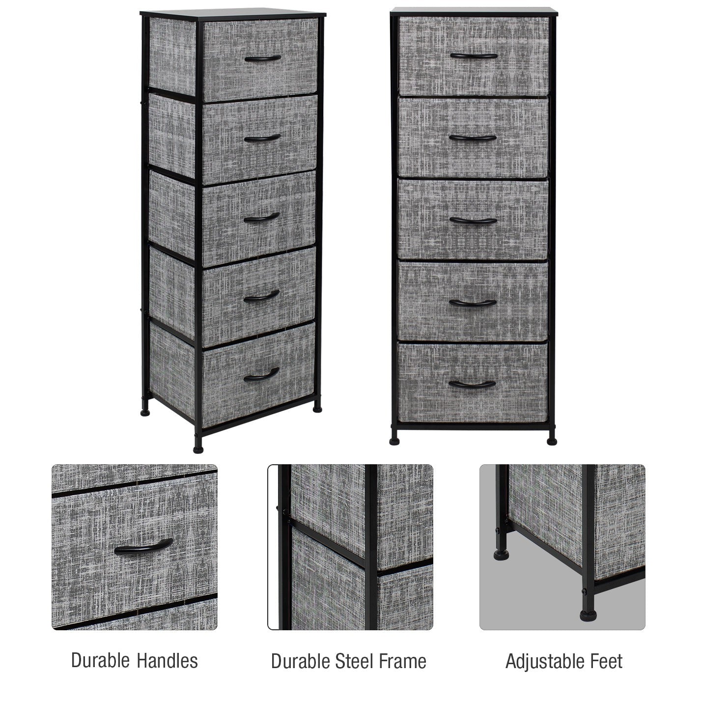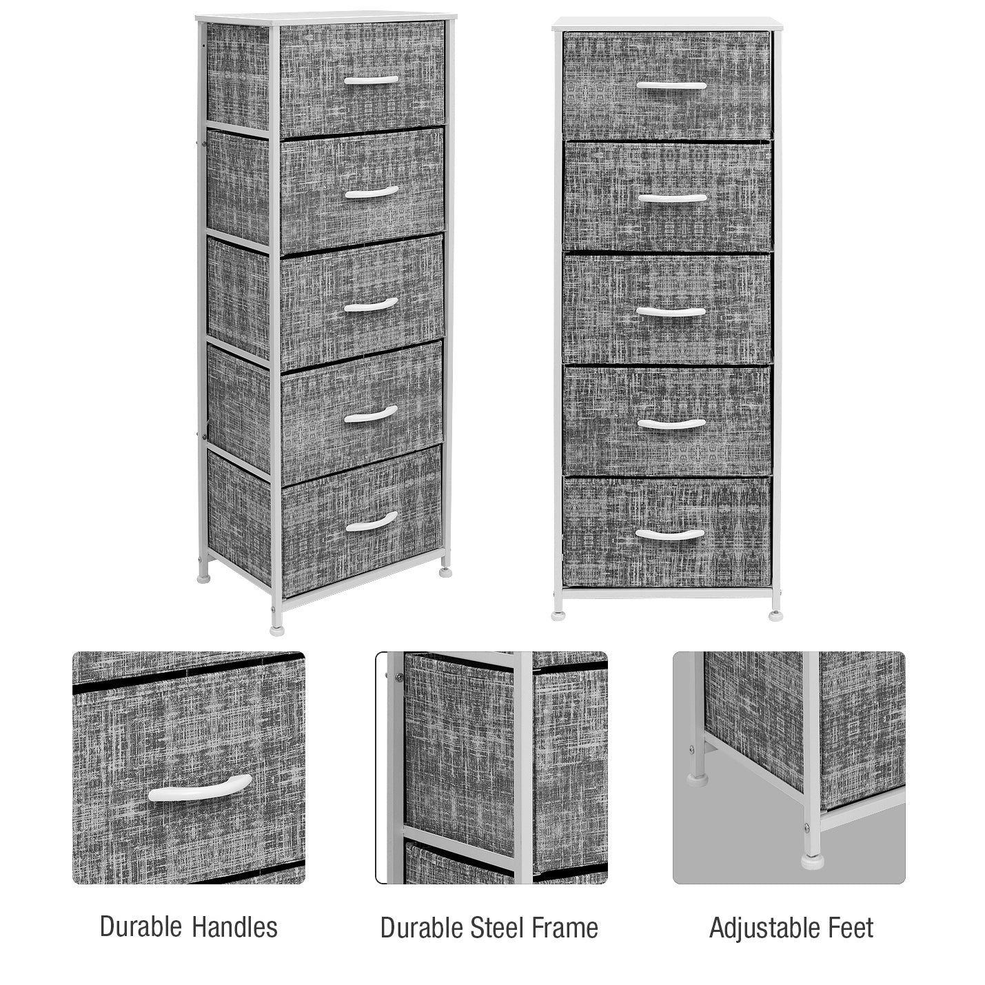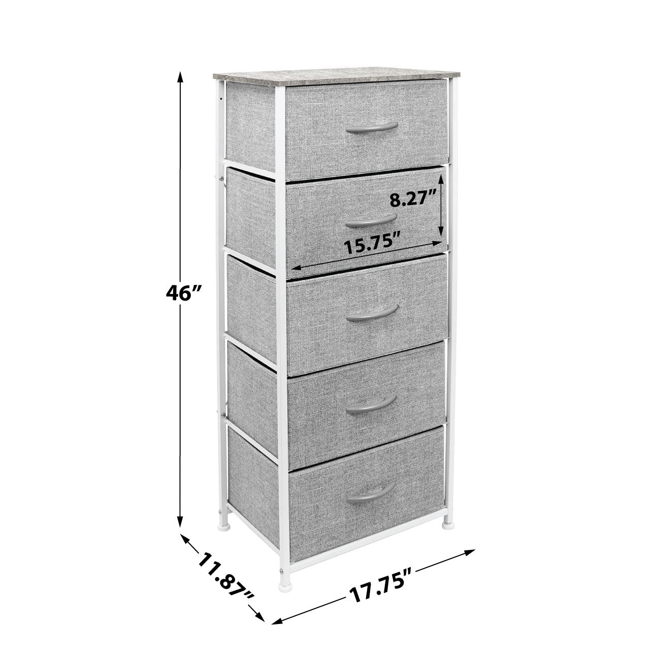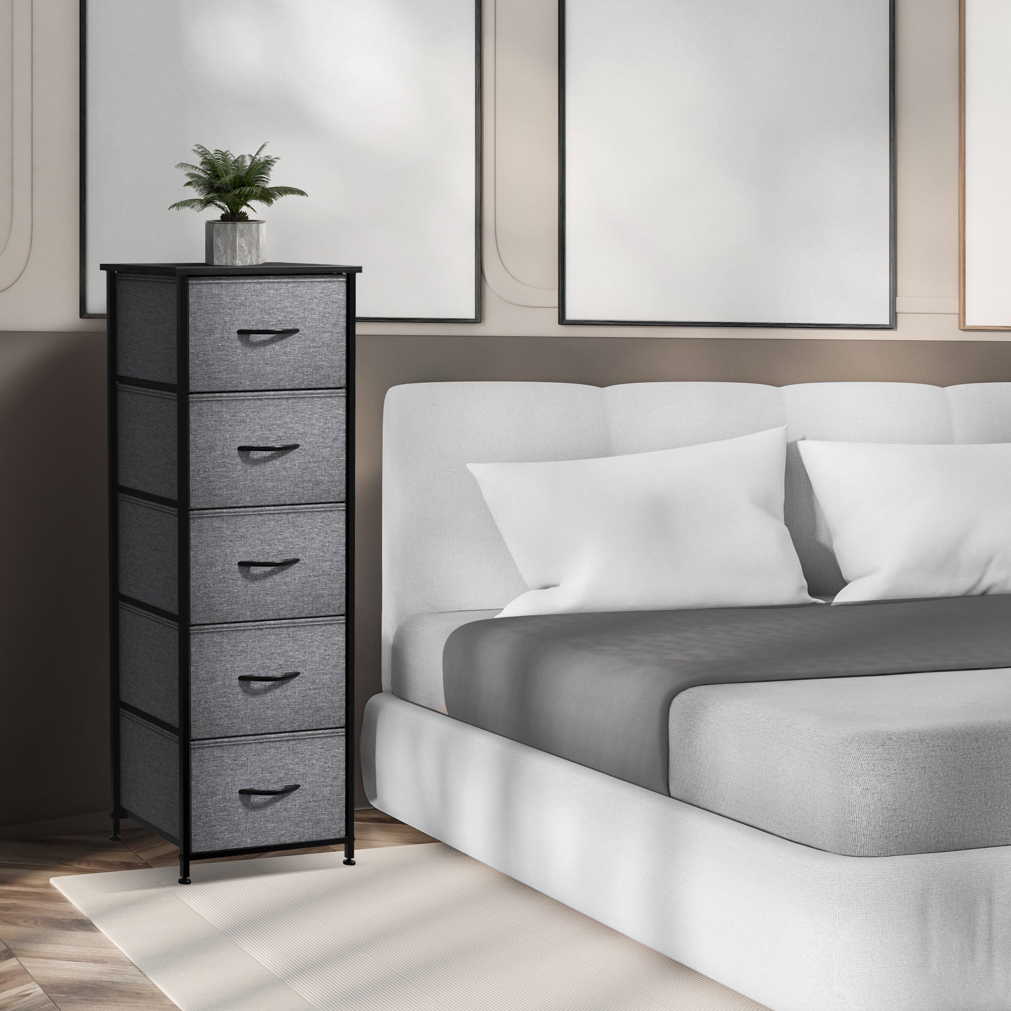 Display or tuck away household items with our 5-Drawer Nightstand. This chest is the ultimate sidekick to your bed, lounger, or couch. Five fabric drawers with handles easily pull out within the steel-frame, offering plenty of storage. Simply stash your lounge clothes and electronics or display your book collection (and maybe a midnight snack) on top! A lightweight frame makes this unit easy to transport around the home. When not in use, fold the fabric drawers flat and unscrew the frame for storage. Use alone or pair with similar styles from the Sorbus Furniture Collection.
