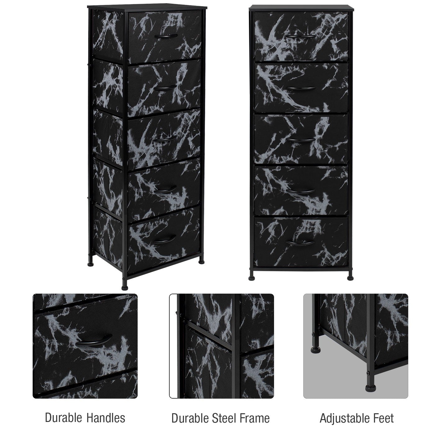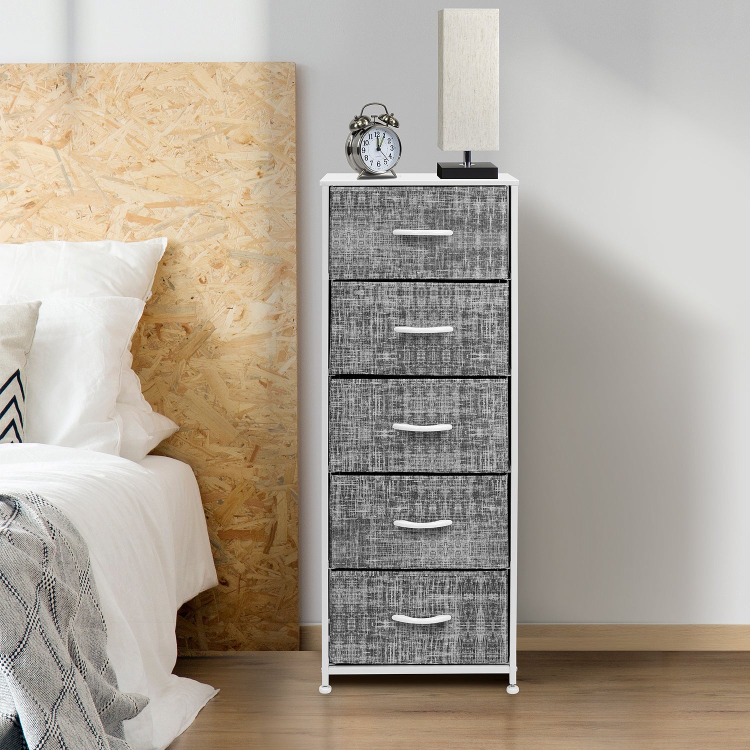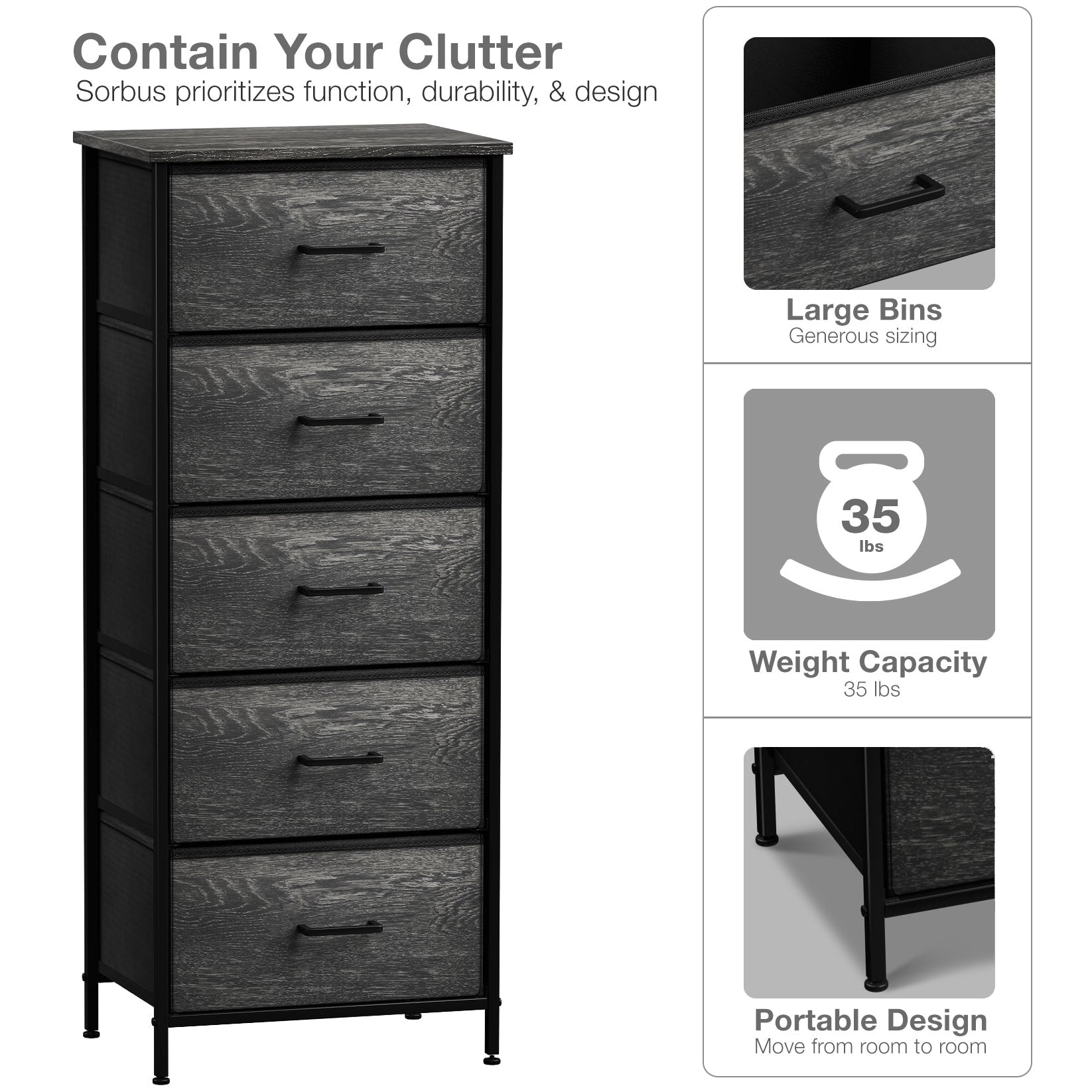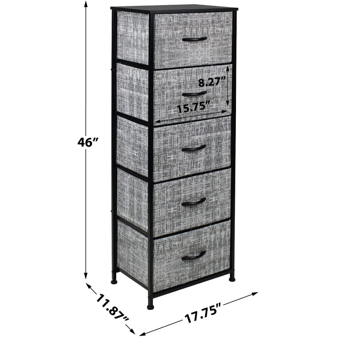 Display or tuck away household items with our 5-Drawer Nightstand. This chest is the ultimate sidekick to your bed, lounger, or couch. Five fabric drawers with handles easily pull out within the steel-frame, offering plenty of storage. Simply stash your lounge clothes and electronics or display your book collection (and maybe a midnight snack) on top! A lightweight frame makes this unit easy to transport around the home. When not in use, fold the fabric drawers flat and unscrew the frame for storage. Use alone or pair with similar styles from the Sorbus Furniture Collection.