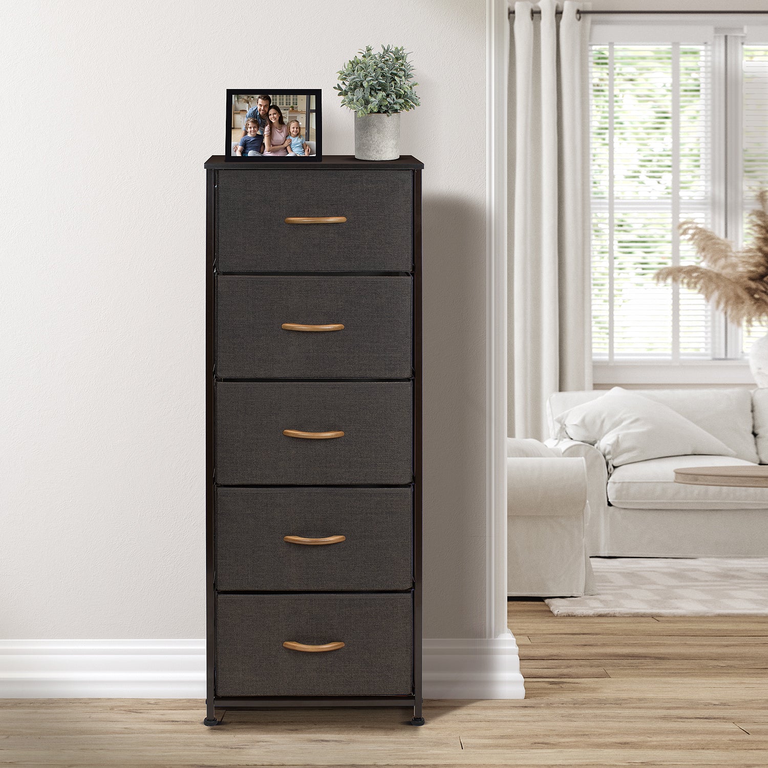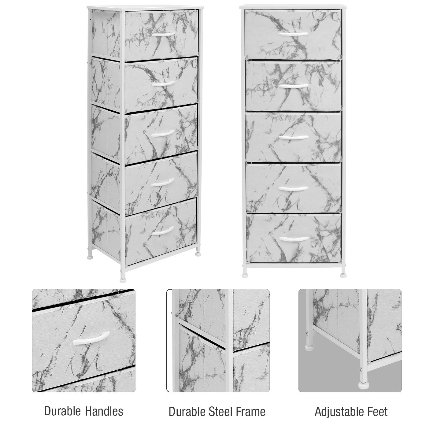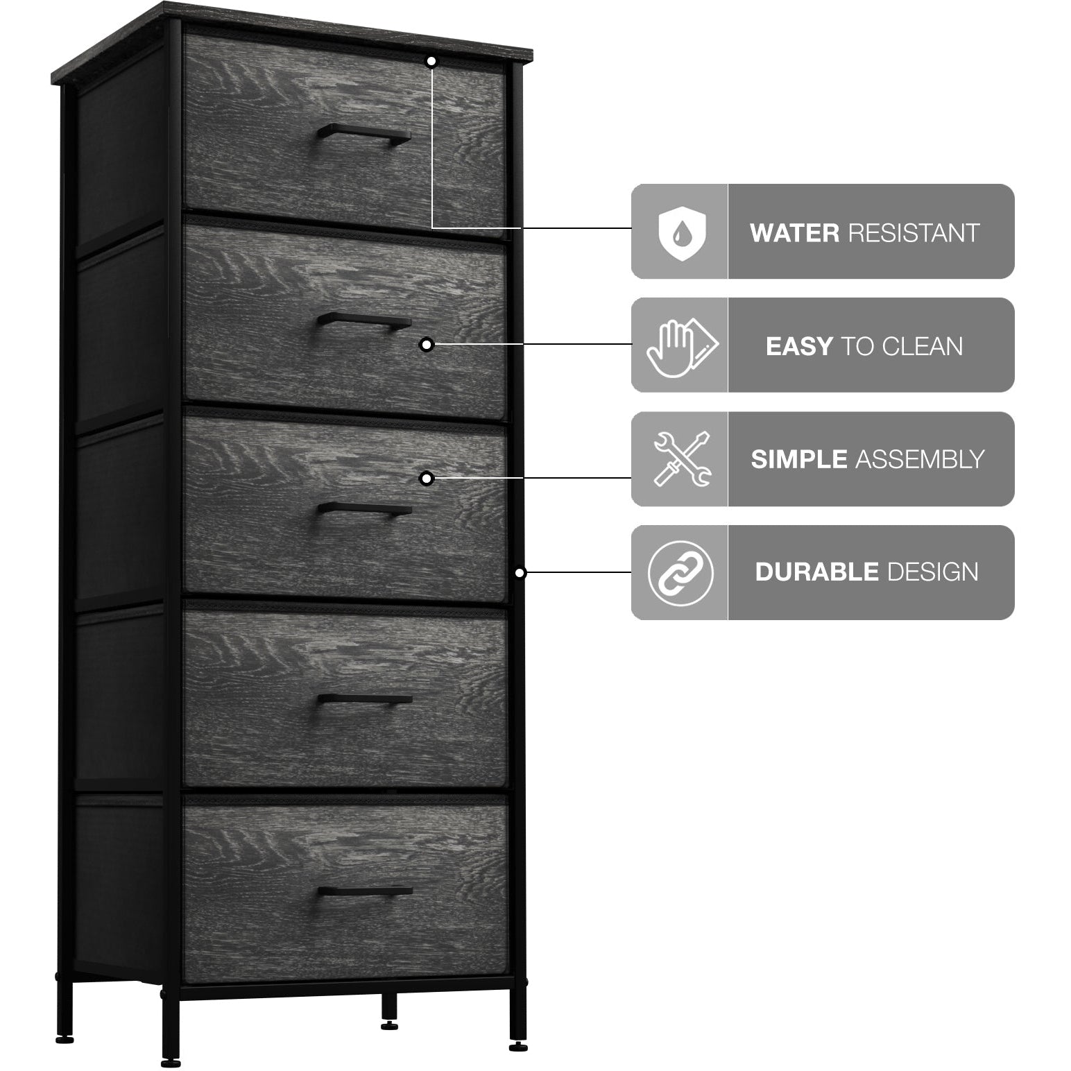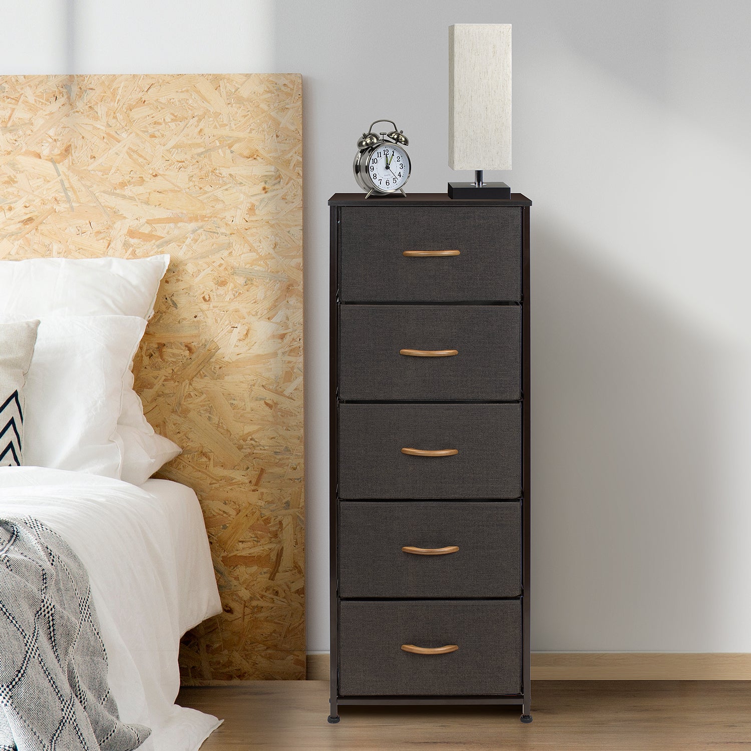 Display or tuck away household items with our 5-Drawer Nightstand. This chest is the ultimate sidekick to your bed, lounger, or couch. Five fabric drawers with handles easily pull out within the steel-frame, offering plenty of storage. Simply stash your lounge clothes and electronics or display your book collection (and maybe a midnight snack) on top! A lightweight frame makes this unit easy to transport around the home. When not in use, fold the fabric drawers flat and unscrew the frame for storage. Use alone or pair with similar styles from the Sorbus Furniture Collection.