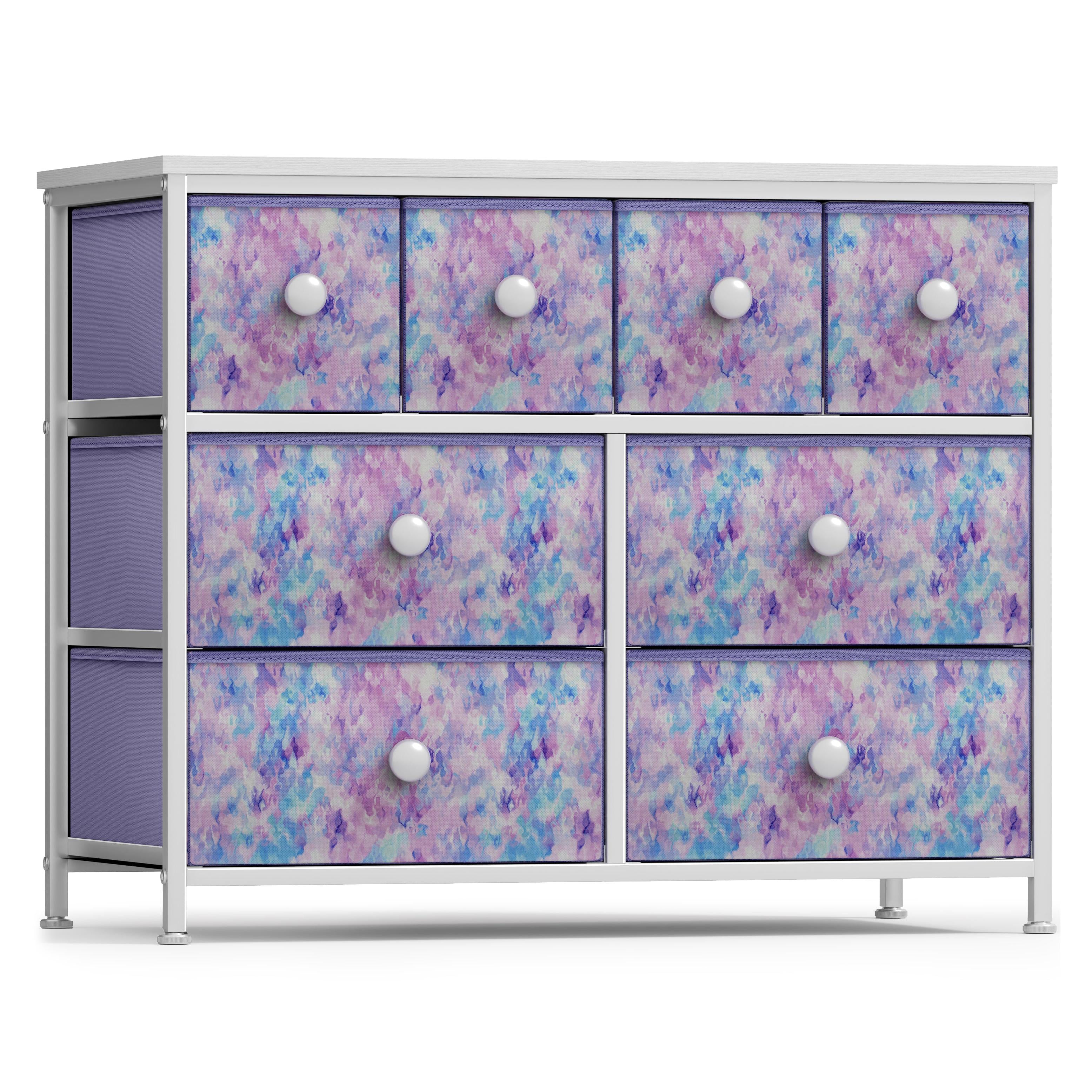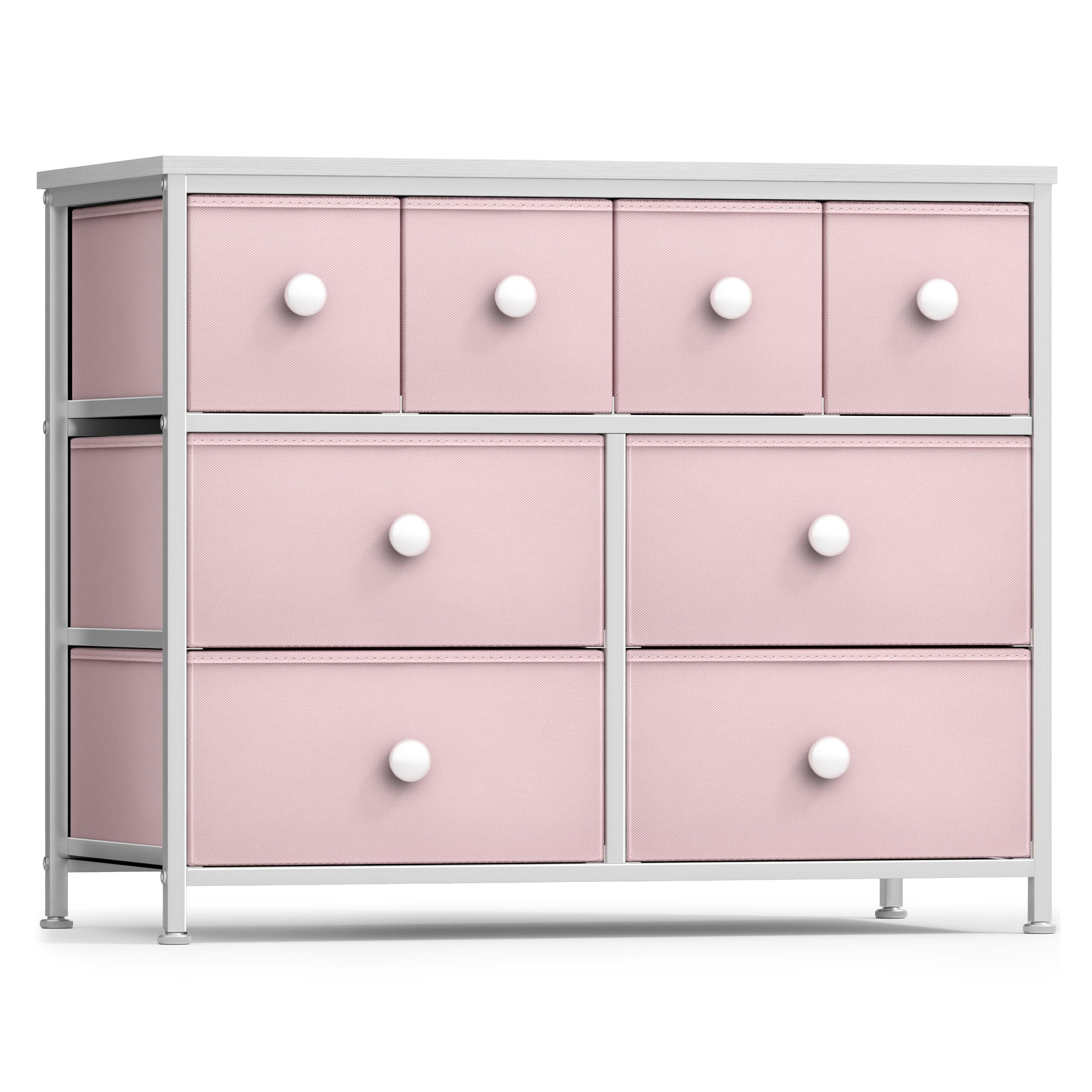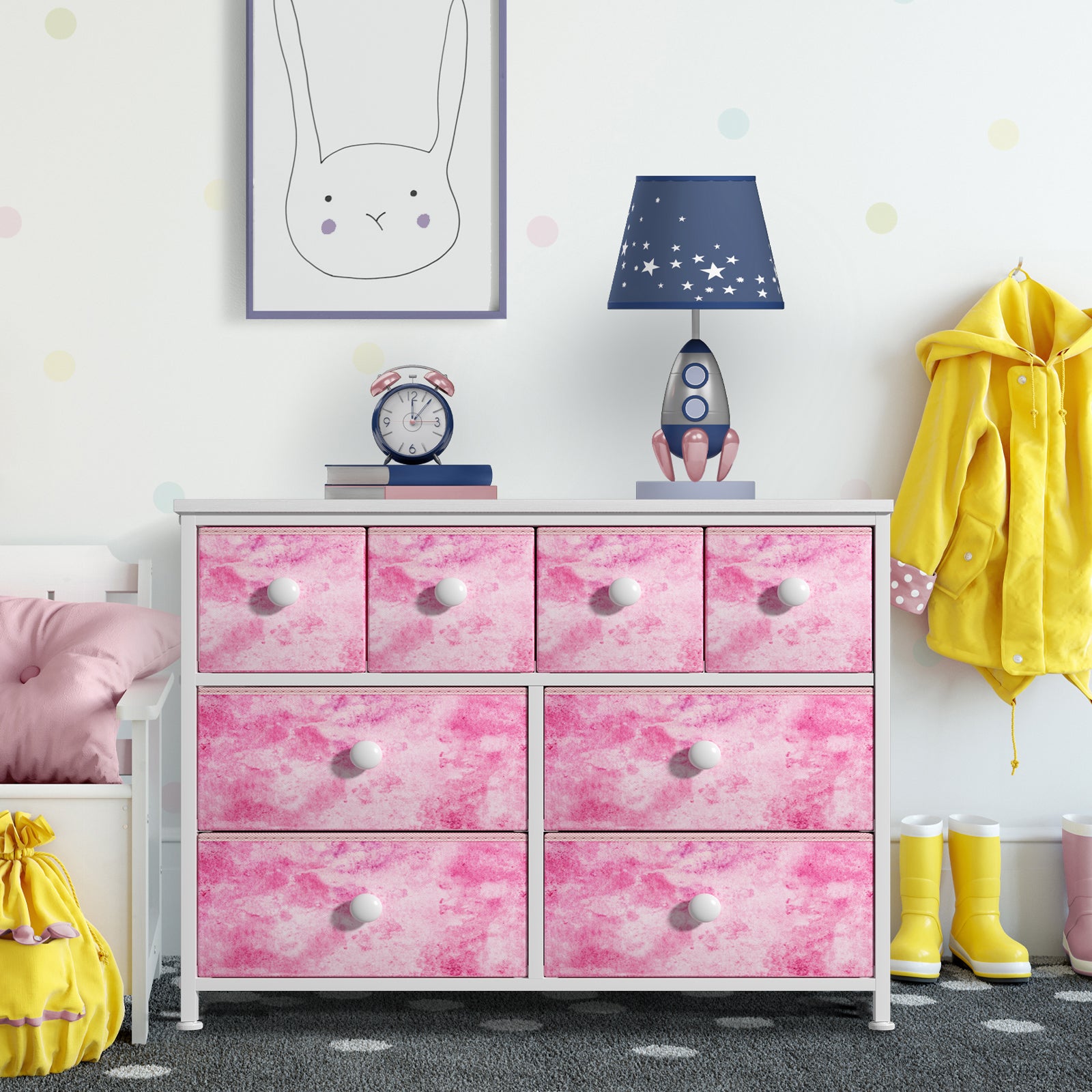 This colorful chest features a tabletop surface and pull-out drawers to tuck away household clutter. Place all of your child's folded t-shirts, jeans, and pajamas, or extra blankets and toys within the spacious fabric drawers. For display, the top surface can be used for lamps, books, clocks, and more. The playful pastel color makes this dresser charming for any nursery, playroom, or bedroom. It is lightweight for easy transport and when not in use, simply fold the fabric drawers flat.