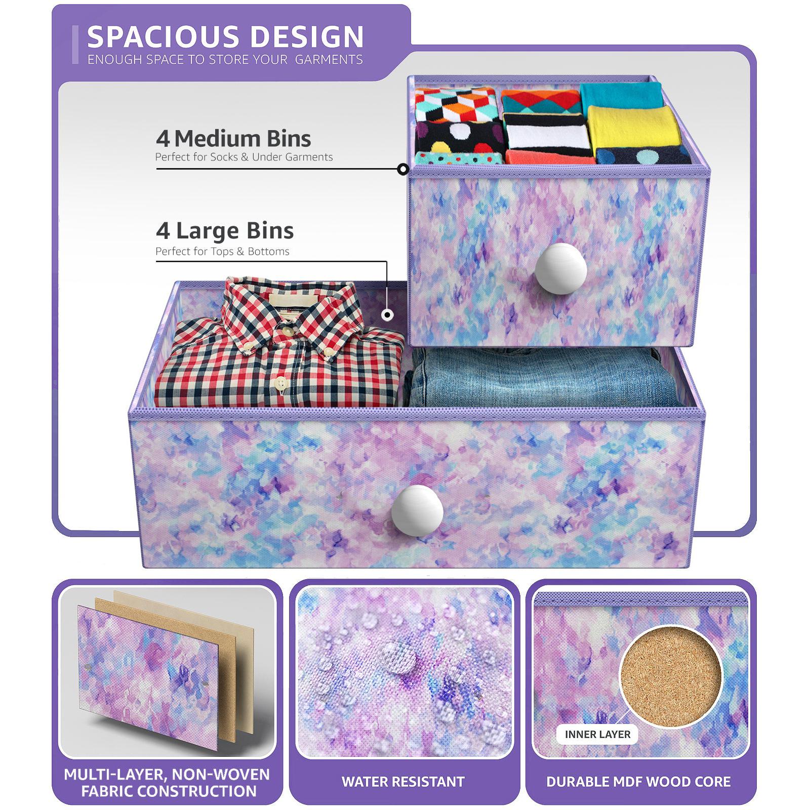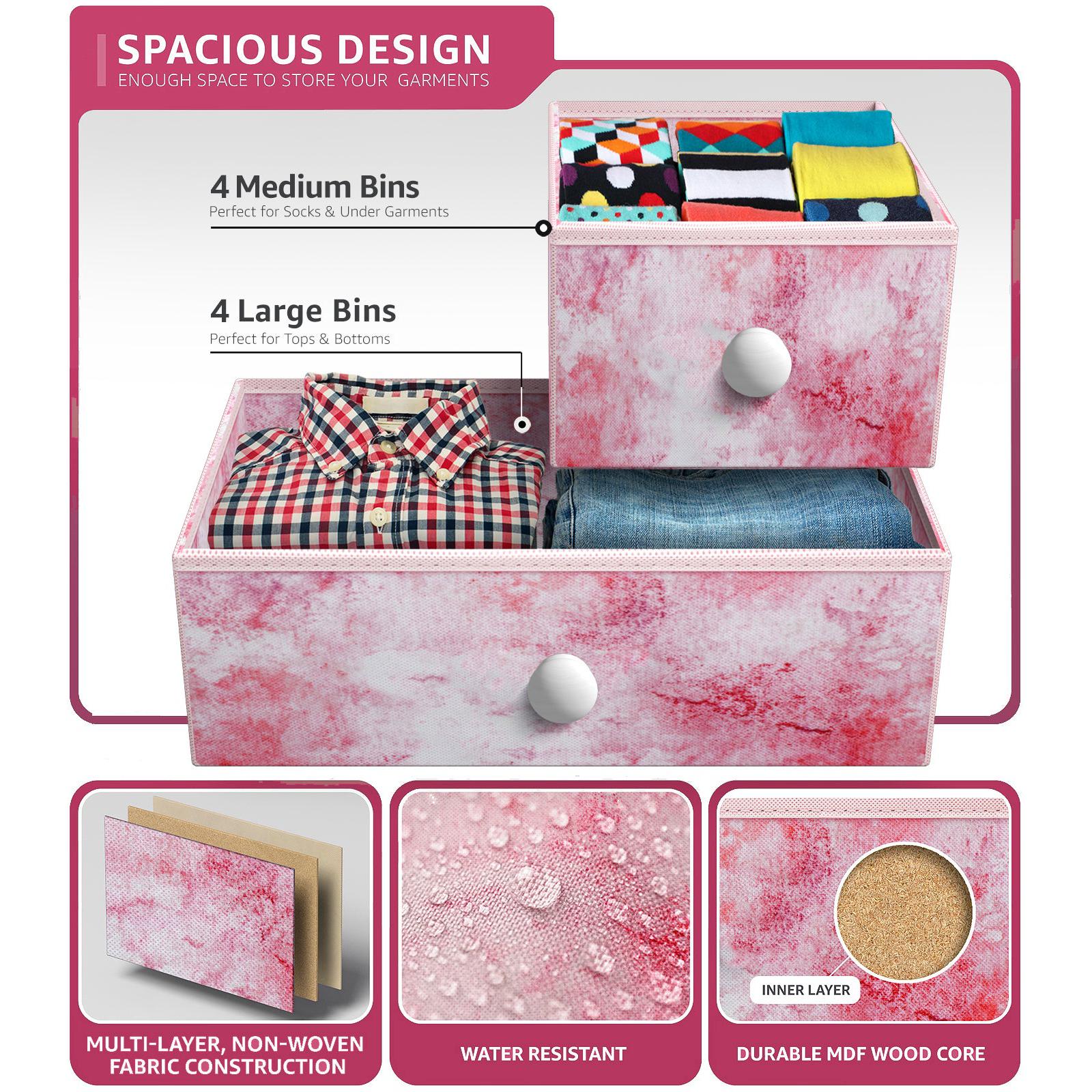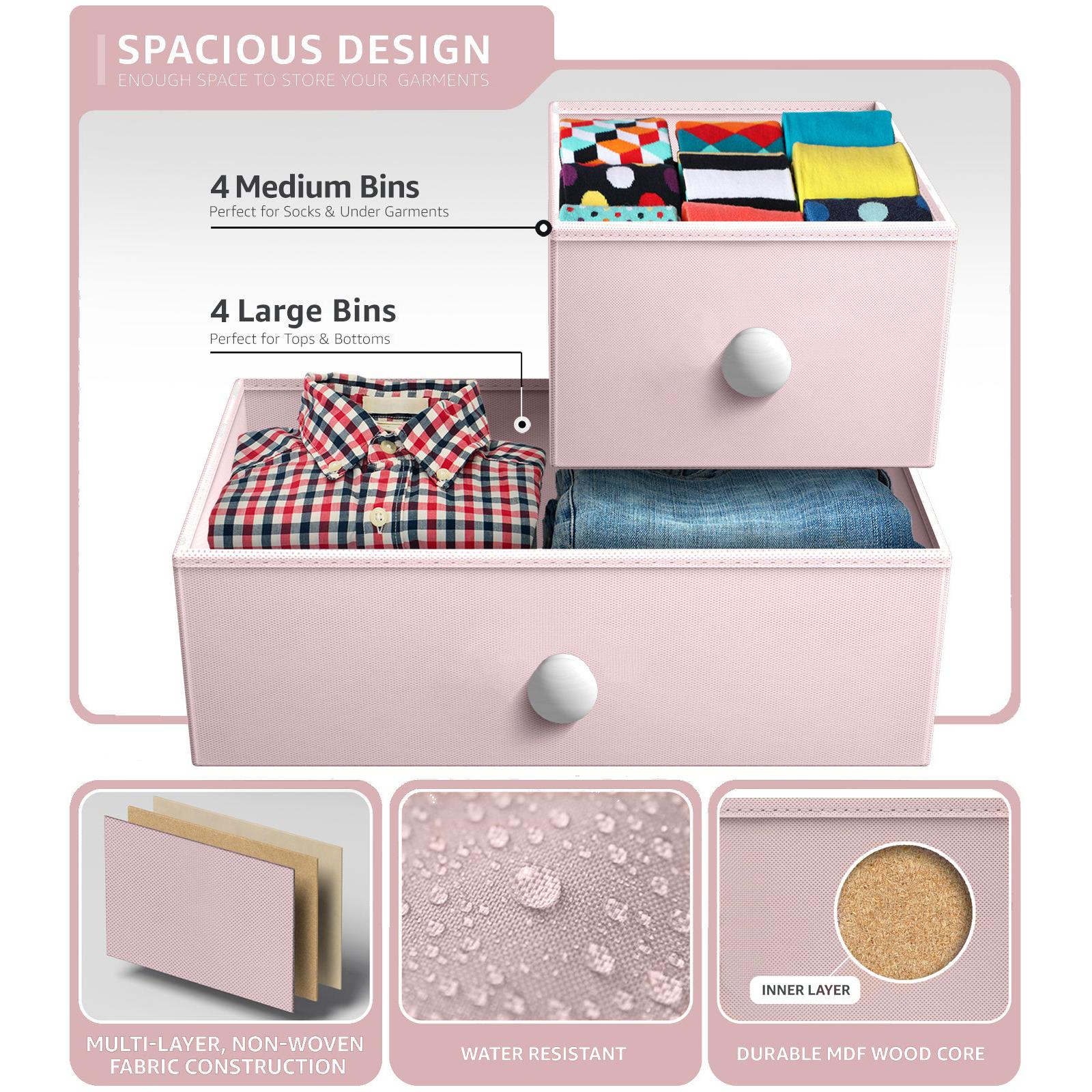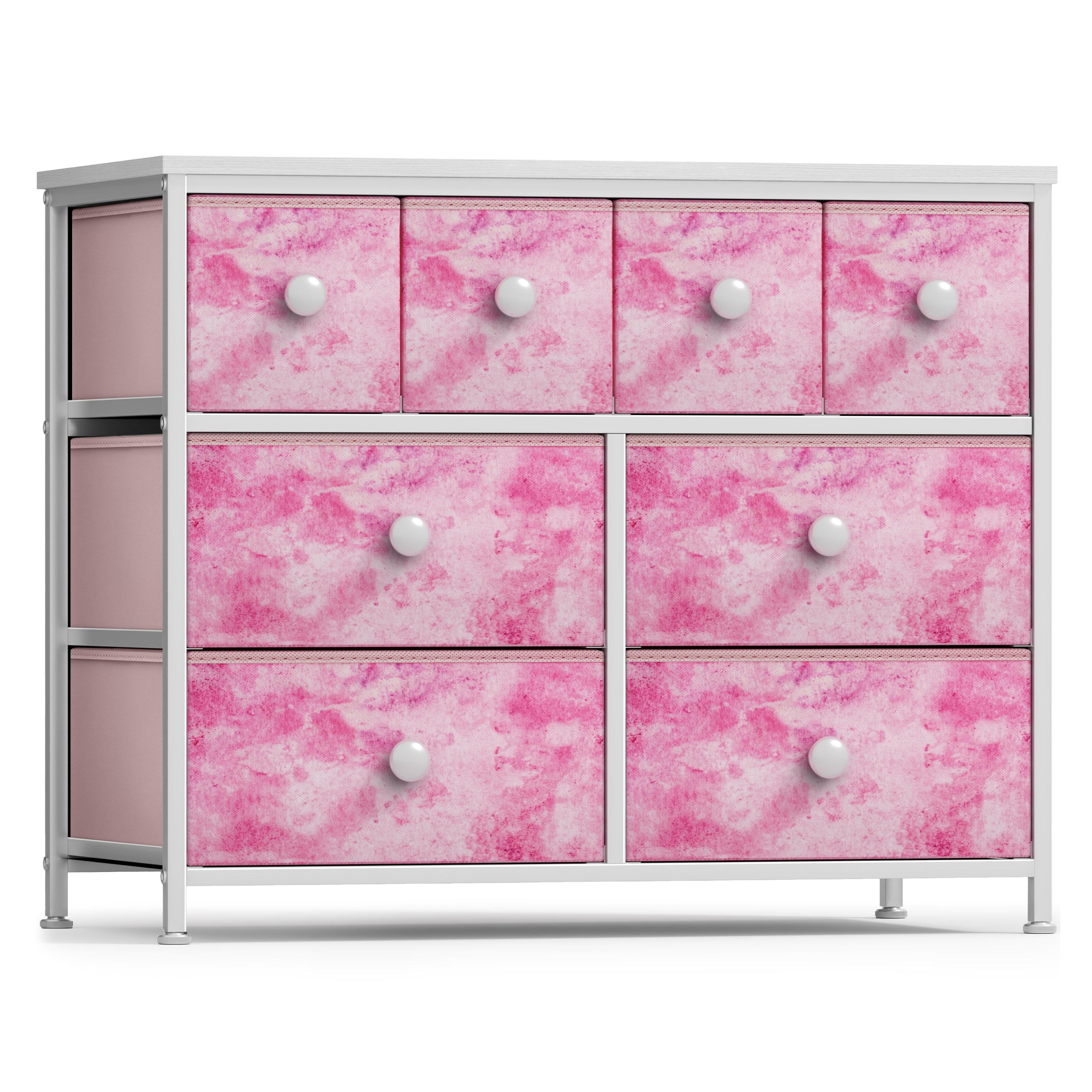 This colorful chest features a tabletop surface and pull-out drawers to tuck away household clutter. Place all of your child's folded t-shirts, jeans, and pajamas, or extra blankets and toys within the spacious fabric drawers. For display, the top surface can be used for lamps, books, clocks, and more. The playful pastel color makes this dresser charming for any nursery, playroom, or bedroom. It is lightweight for easy transport and when not in use, simply fold the fabric drawers flat.