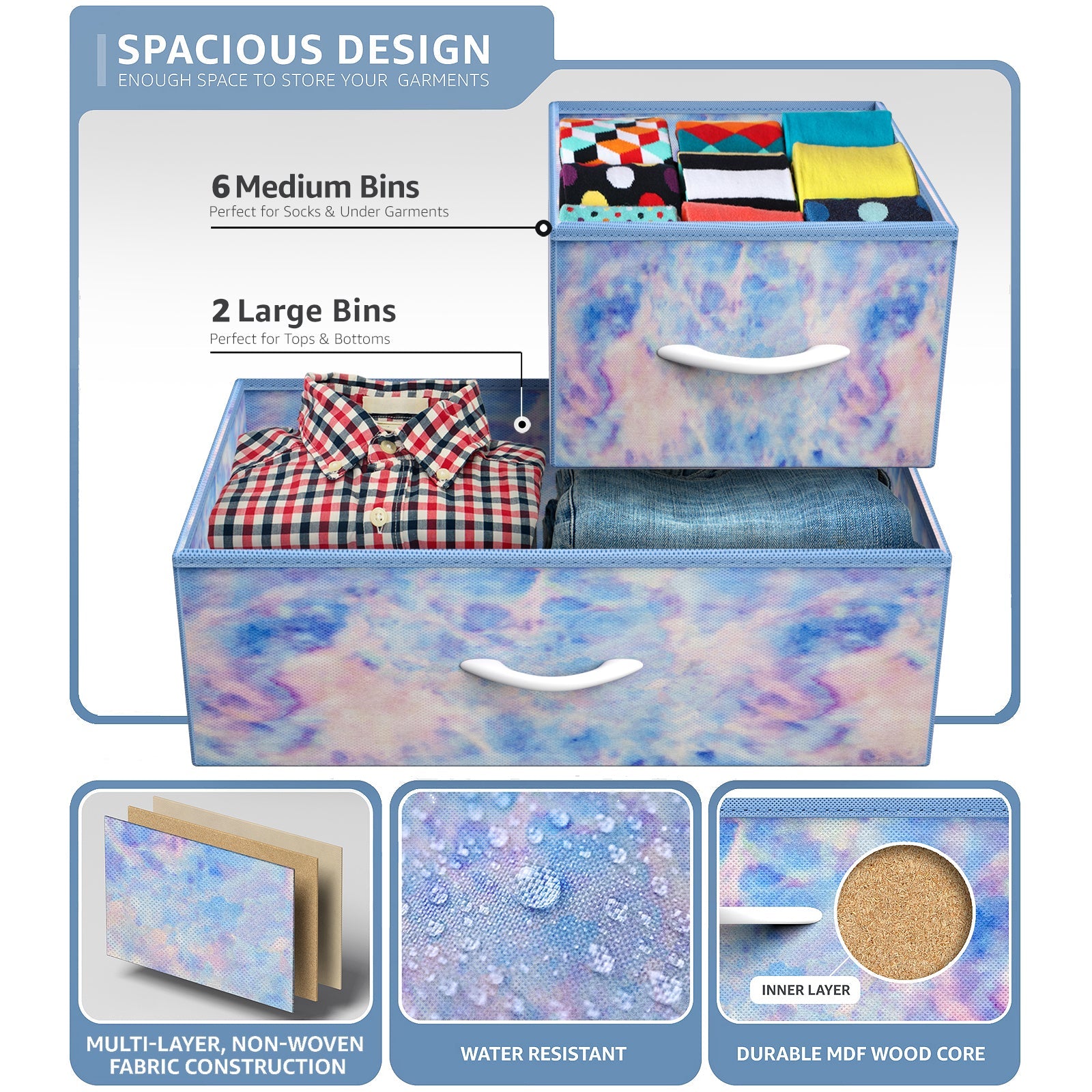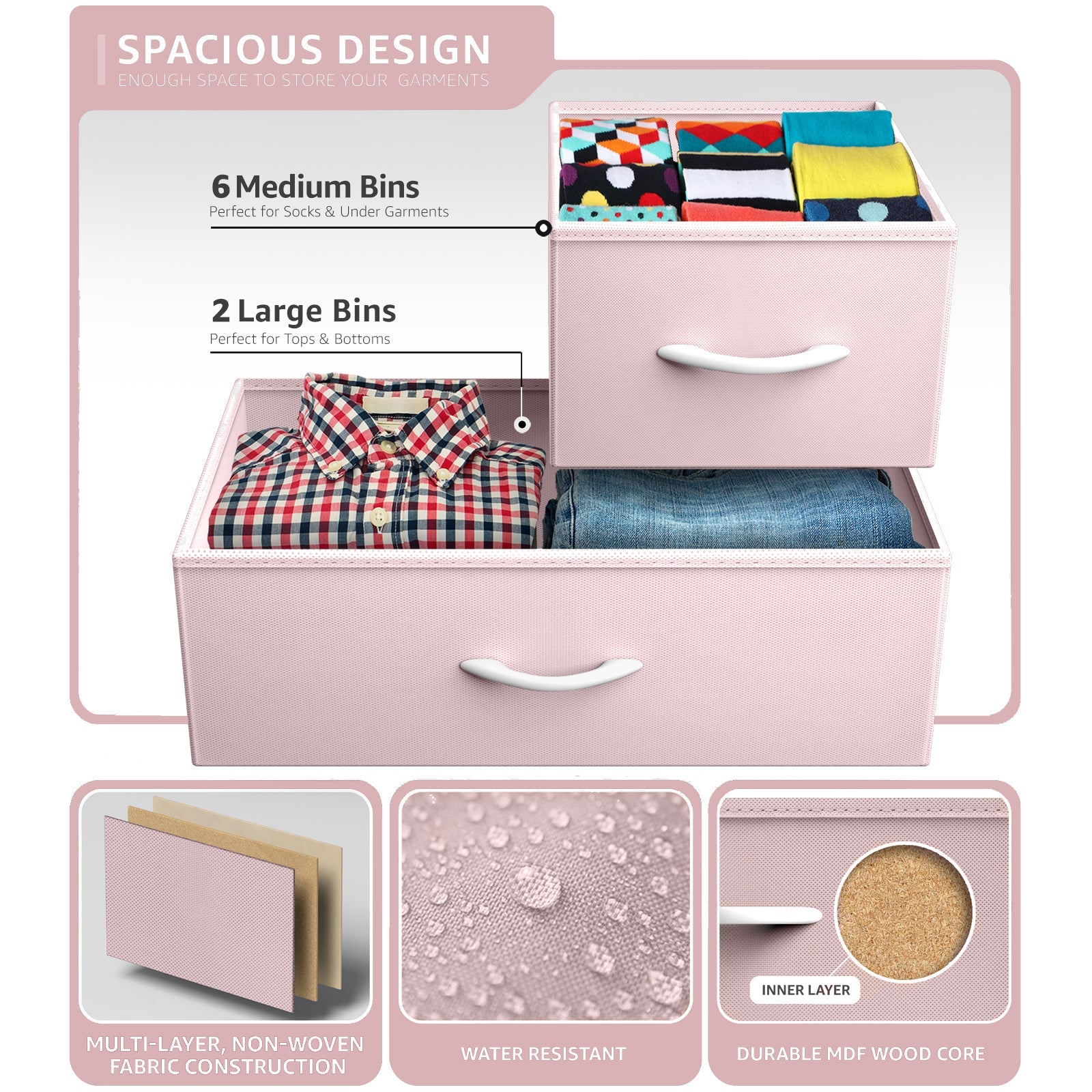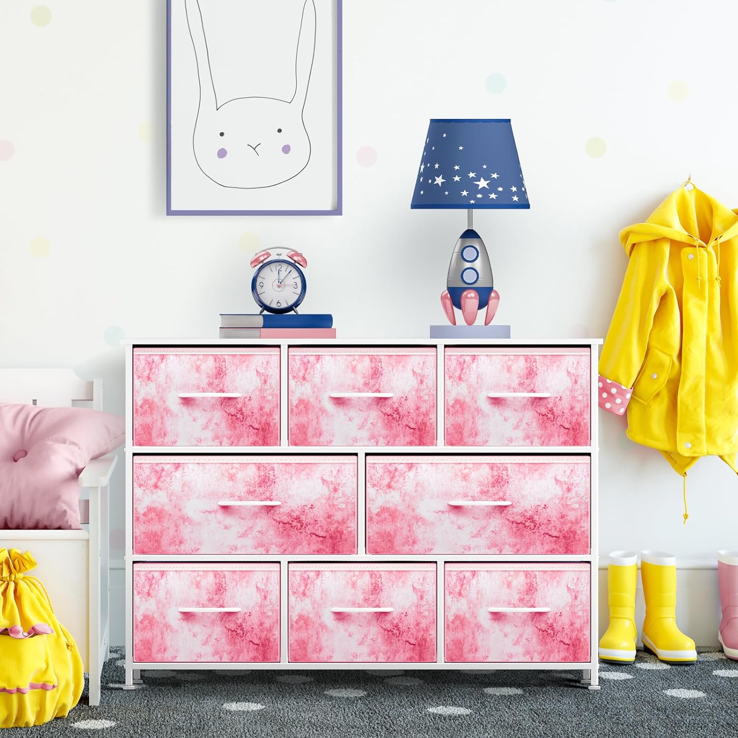Update your child's room with our 8-Drawer Dresser. This colorful chest features a tabletop surface and pull-out drawers to tuck away household clutter. Place all of your child's folded t-shirts, jeans, and pajamas, or extra blankets and toys within the spacious fabric drawers. For display, the top surface can be used for lamps, books, clocks, and more. The playful color makes this dresser charming for any nursery, playroom, or bedroom. It is lightweight for easy transport and when not in use, simply fold the fabric drawers flat. Complete the look with similar pieces from the Sorbus Furniture Collection.