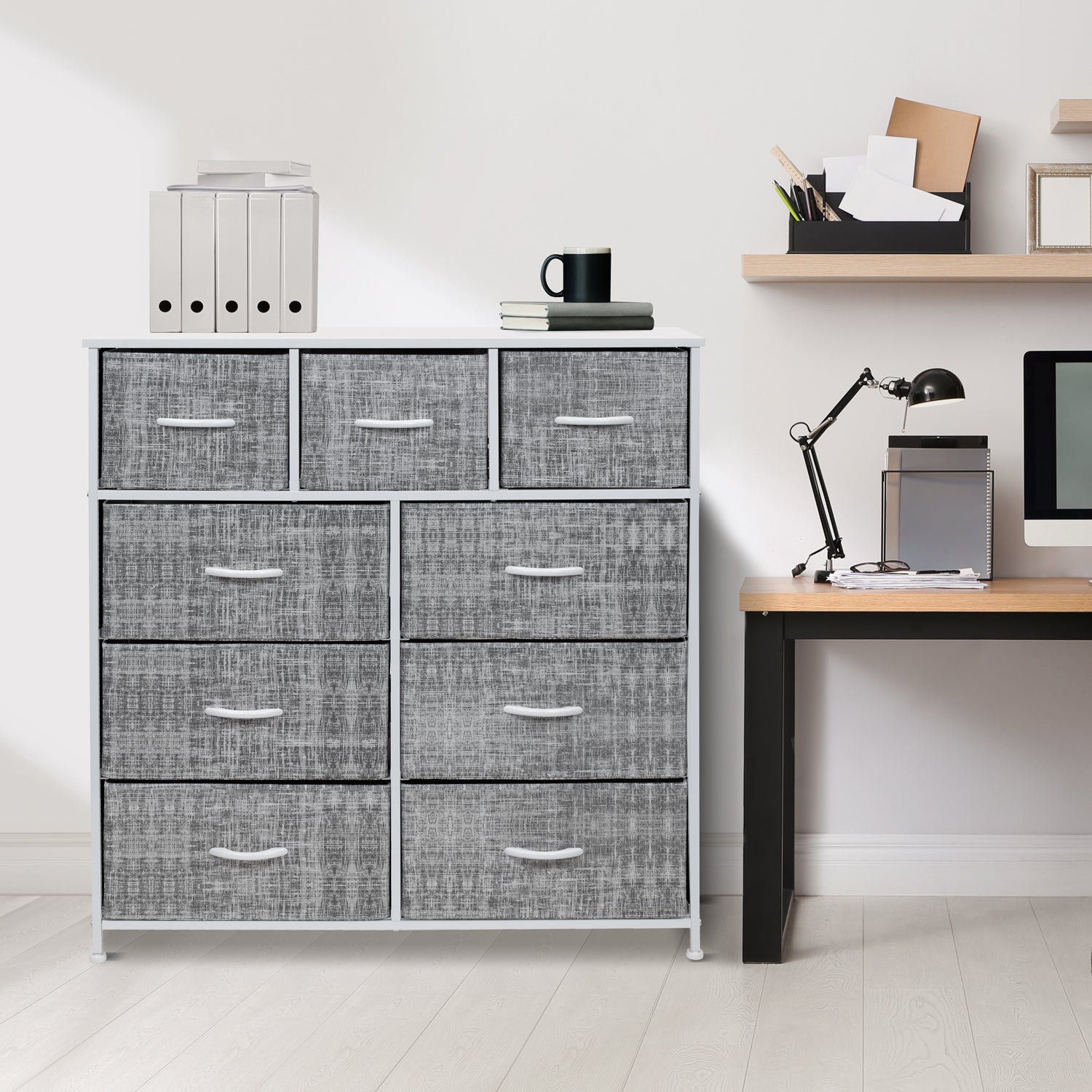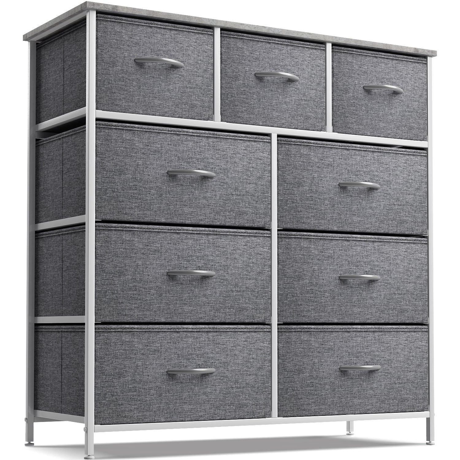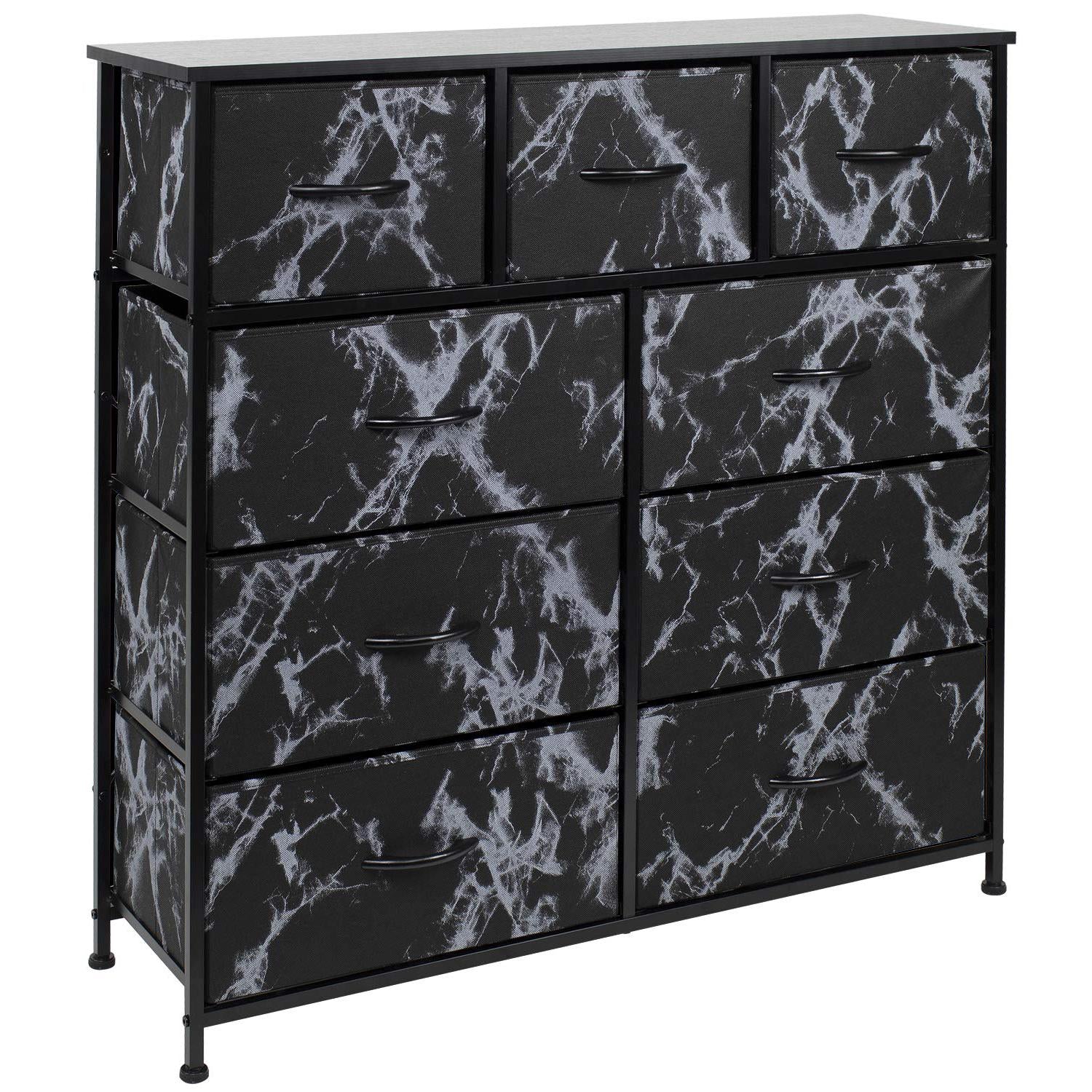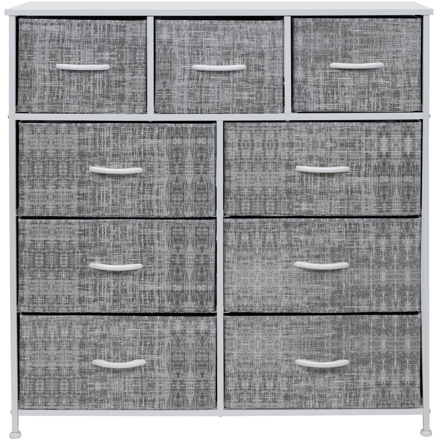 Give your household essentials a cozy landing spot with our 9-Drawer Dresser. This beautiful chest features a tabletop surface and pull-out drawers to tuck away household clutter. The thoughtful design is great for small living spaces and works equally well near the bed or sofa. Organization enthusiasts will enjoy filling each drawer with clothing, linens, and knick-knicks from around the home. The lightweight frame makes this unit easy to transport and when not in use, simply fold the fabric drawers flat for storage. Use alone as a single unit or pair with similar styles from the Sorbus Furniture Collection.
