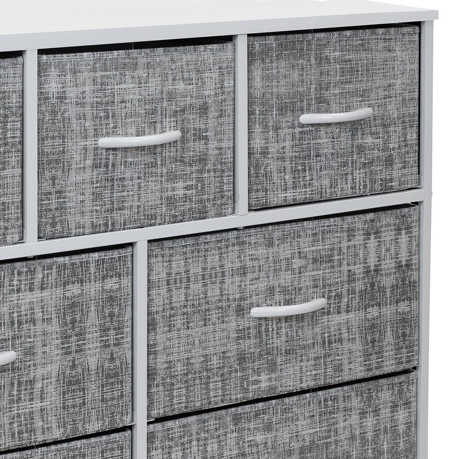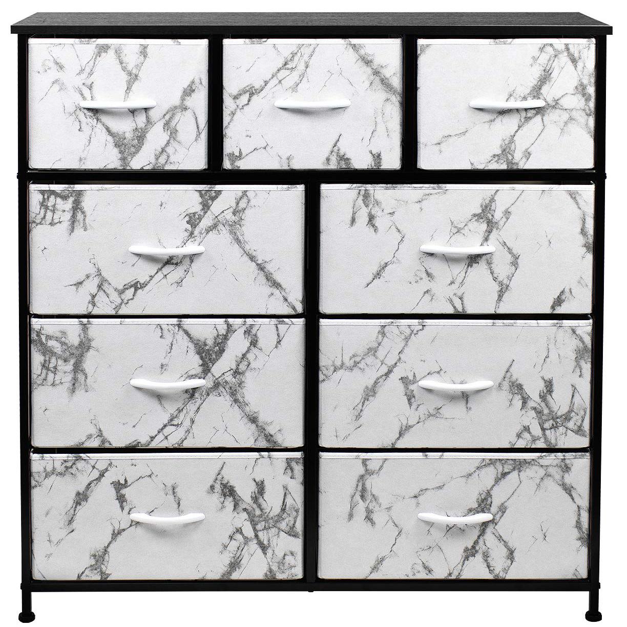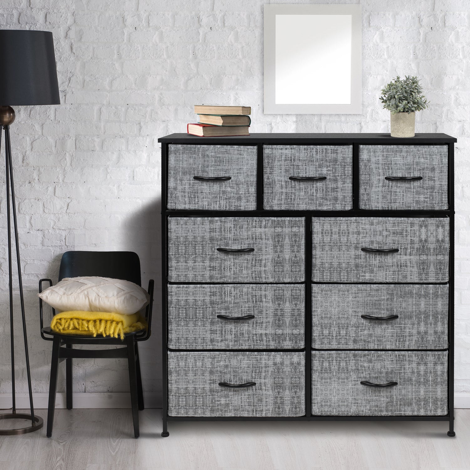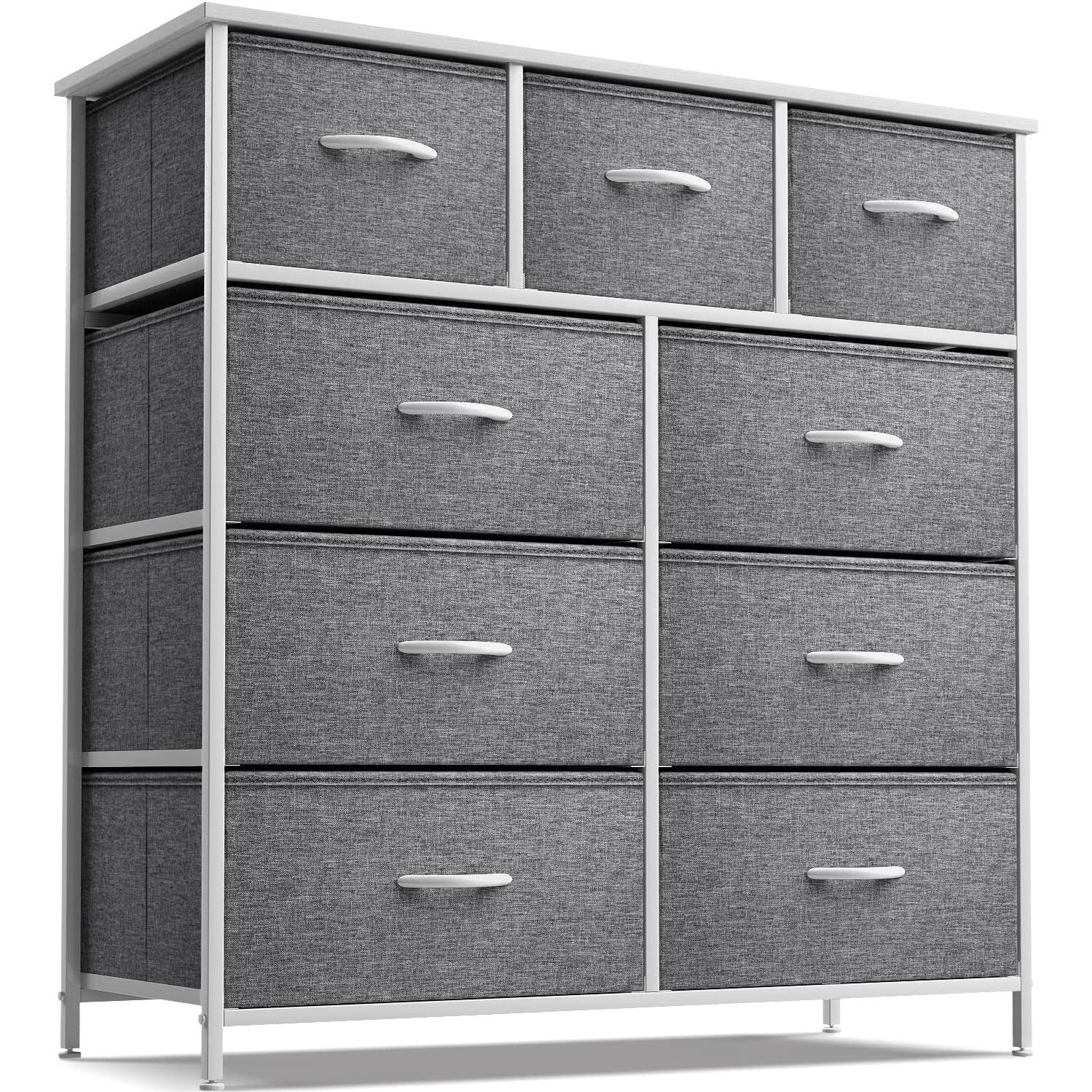 Give your household essentials a cozy landing spot with our 9-Drawer Dresser. This beautiful chest features a tabletop surface and pull-out drawers to tuck away household clutter. The thoughtful design is great for small living spaces and works equally well near the bed or sofa. Organization enthusiasts will enjoy filling each drawer with clothing, linens, and knick-knicks from around the home. The lightweight frame makes this unit easy to transport and when not in use, simply fold the fabric drawers flat for storage. Use alone as a single unit or pair with similar styles from the Sorbus Furniture Collection.