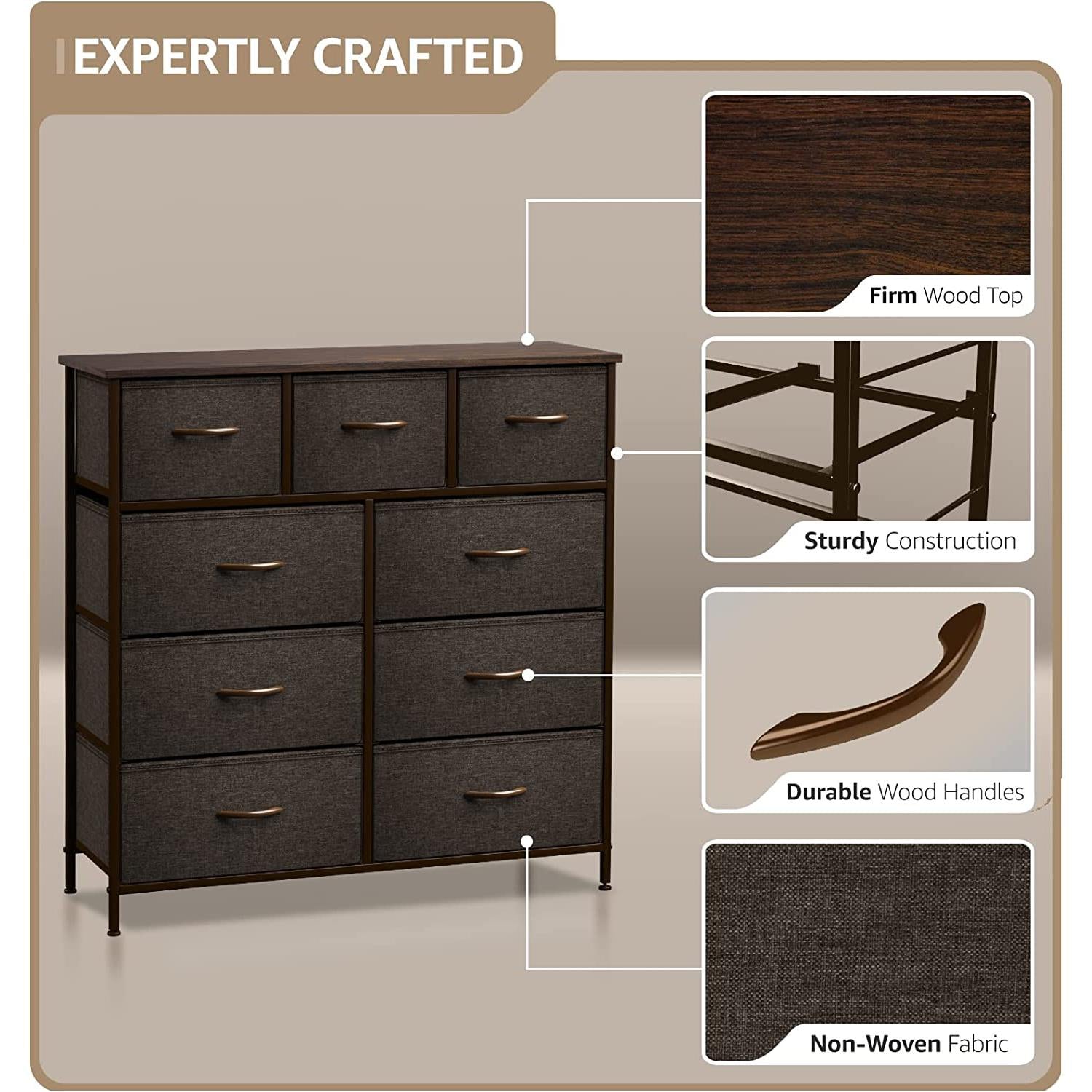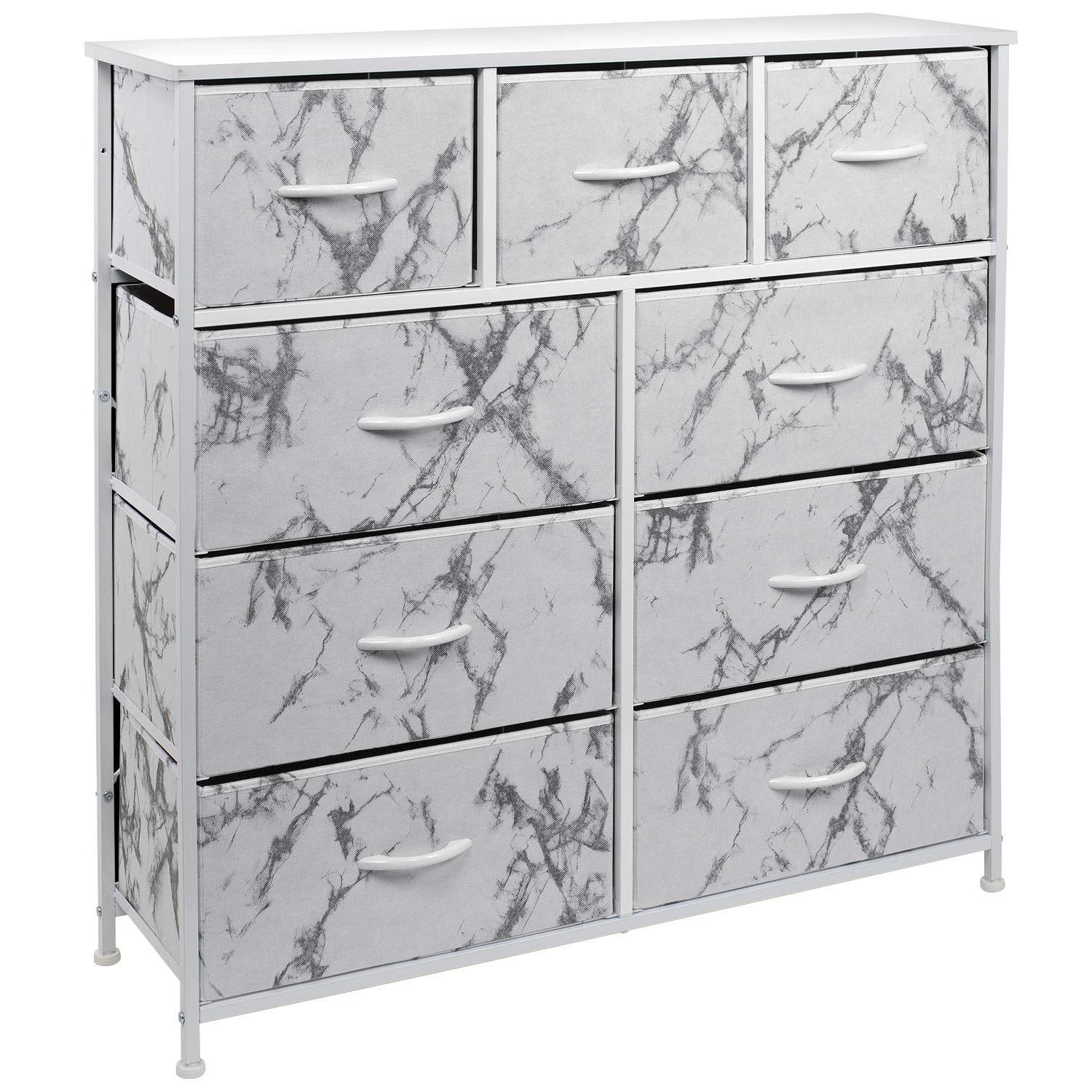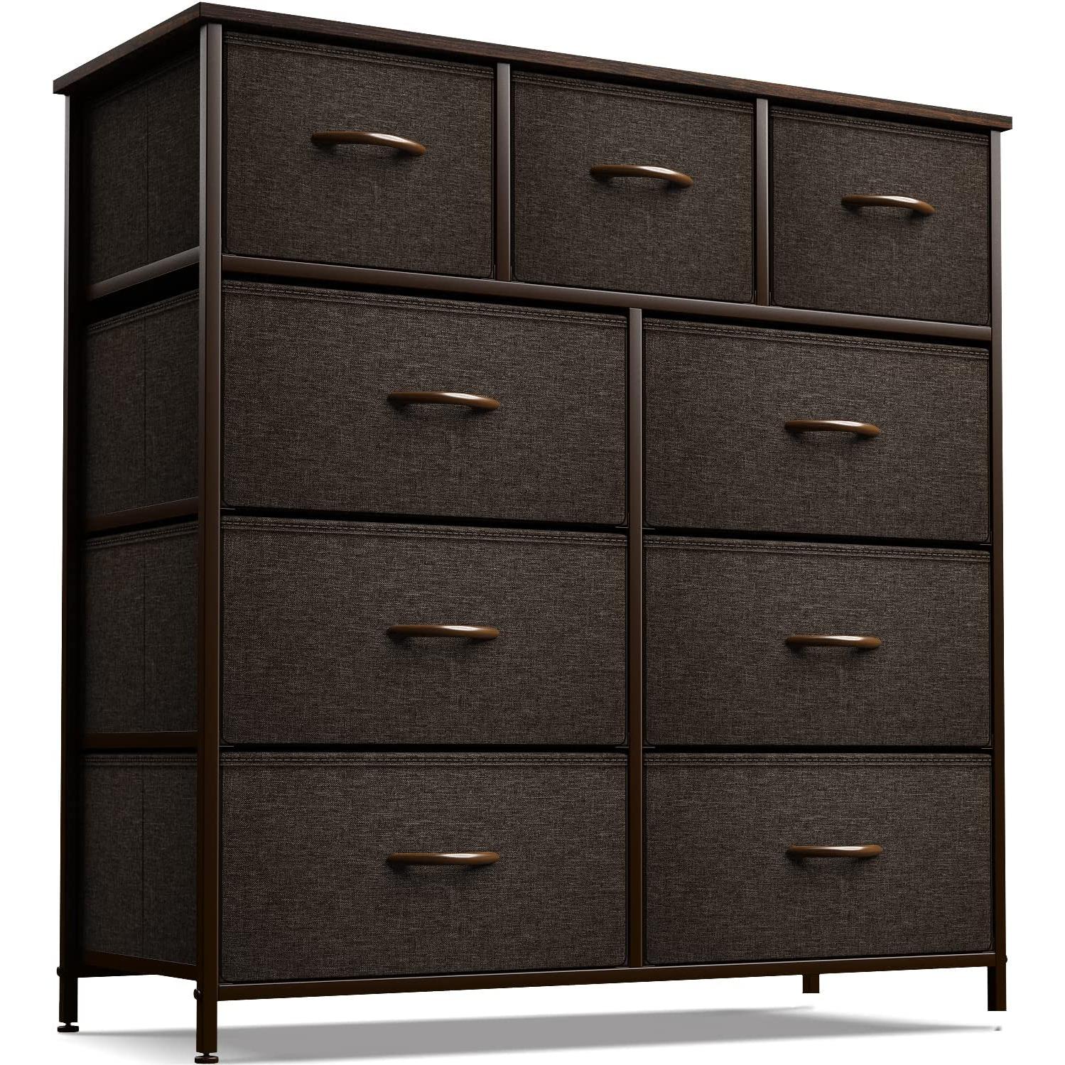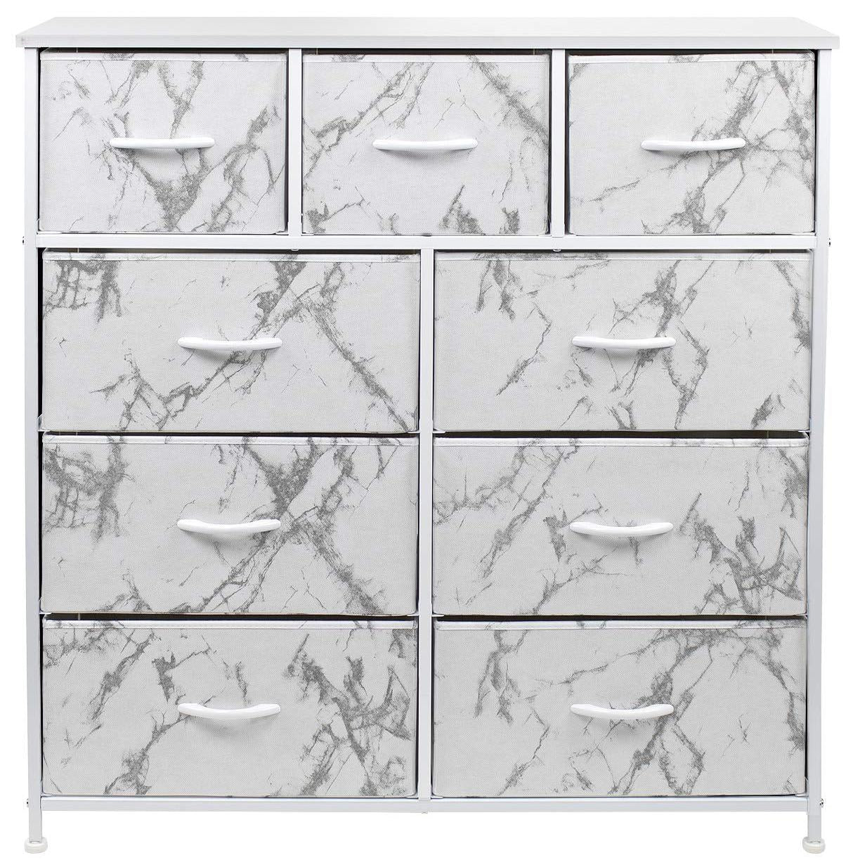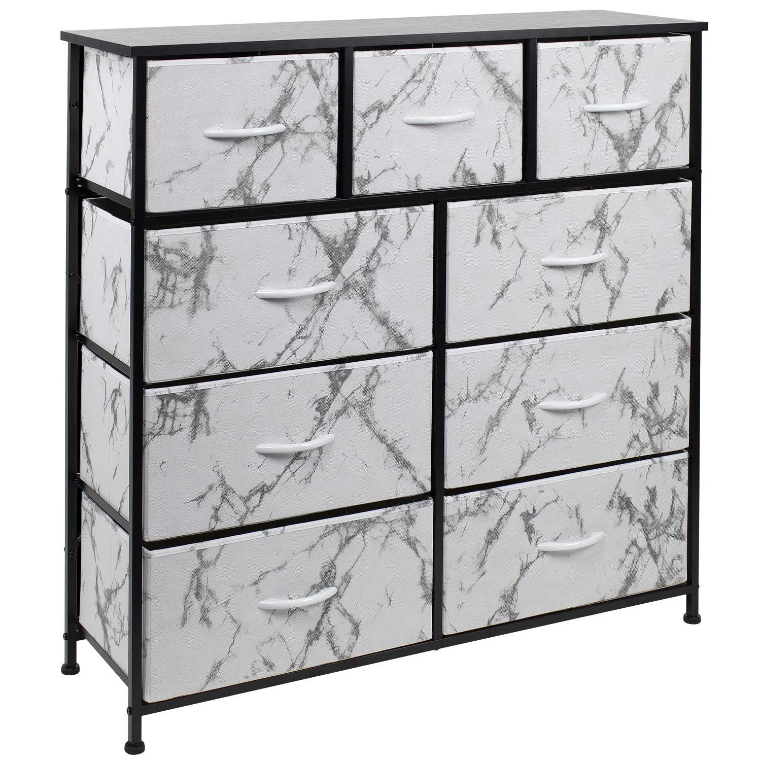 Give your household essentials a cozy landing spot with our 9-Drawer Dresser. This beautiful chest features a tabletop surface and pull-out drawers to tuck away household clutter. The thoughtful design is great for small living spaces and works equally well near the bed or sofa. Organization enthusiasts will enjoy filling each drawer with clothing, linens, and knick-knicks from around the home. The lightweight frame makes this unit easy to transport and when not in use, simply fold the fabric drawers flat for storage. Use alone as a single unit or pair with similar styles from the Sorbus Furniture Collection.