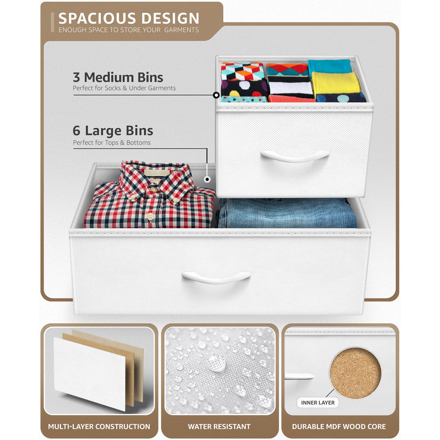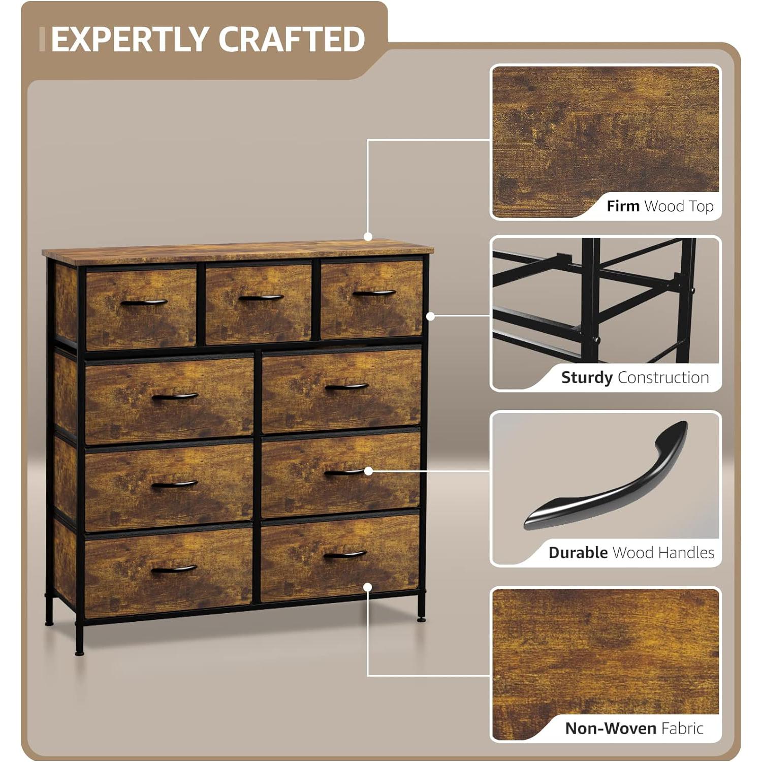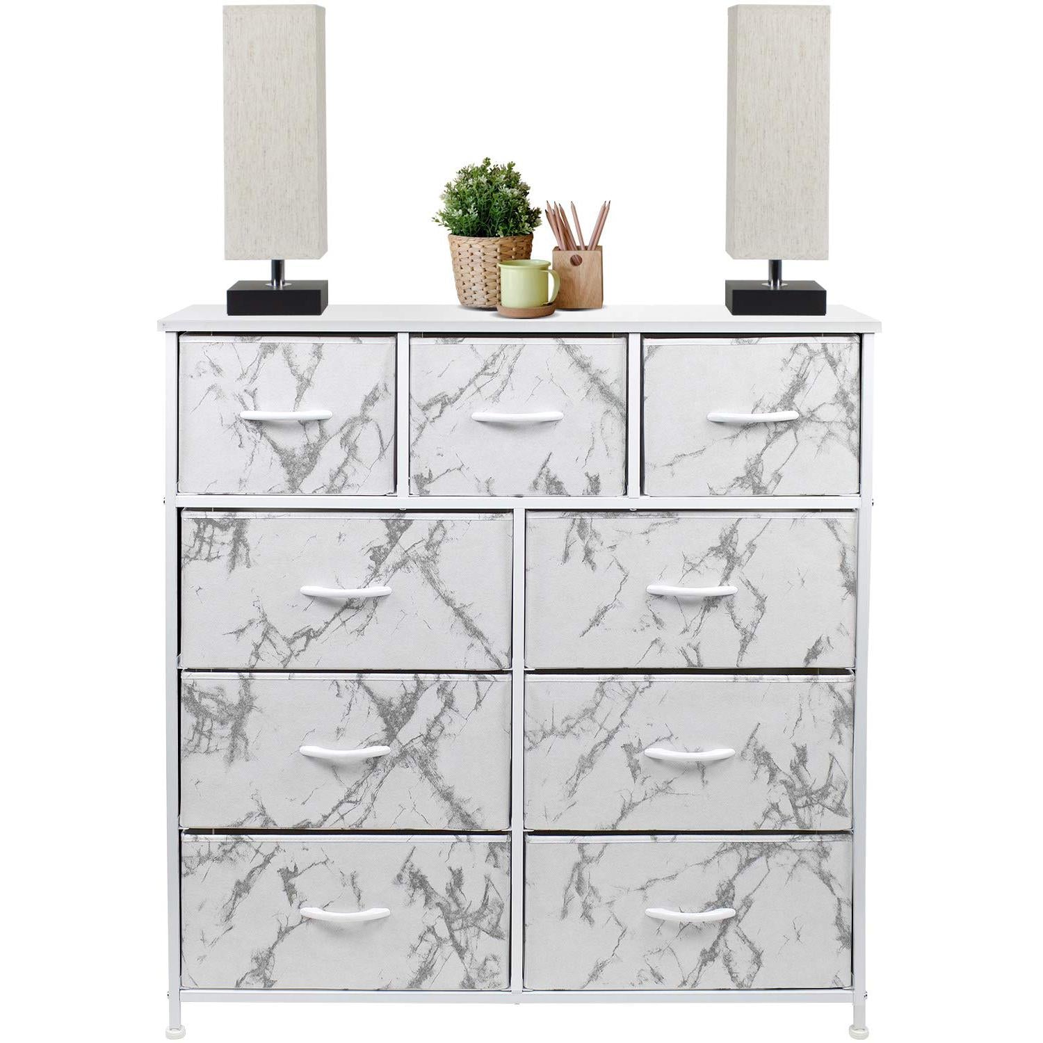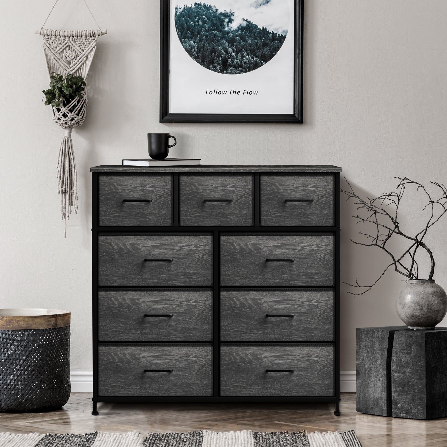 Give your household essentials a cozy landing spot with our 9-Drawer Dresser. This beautiful chest features a tabletop surface and pull-out drawers to tuck away household clutter. The thoughtful design is great for small living spaces and works equally well near the bed or sofa. Organization enthusiasts will enjoy filling each drawer with clothing, linens, and knick-knicks from around the home. The lightweight frame makes this unit easy to transport and when not in use, simply fold the fabric drawers flat for storage. Use alone as a single unit or pair with similar styles from the Sorbus Furniture Collection.