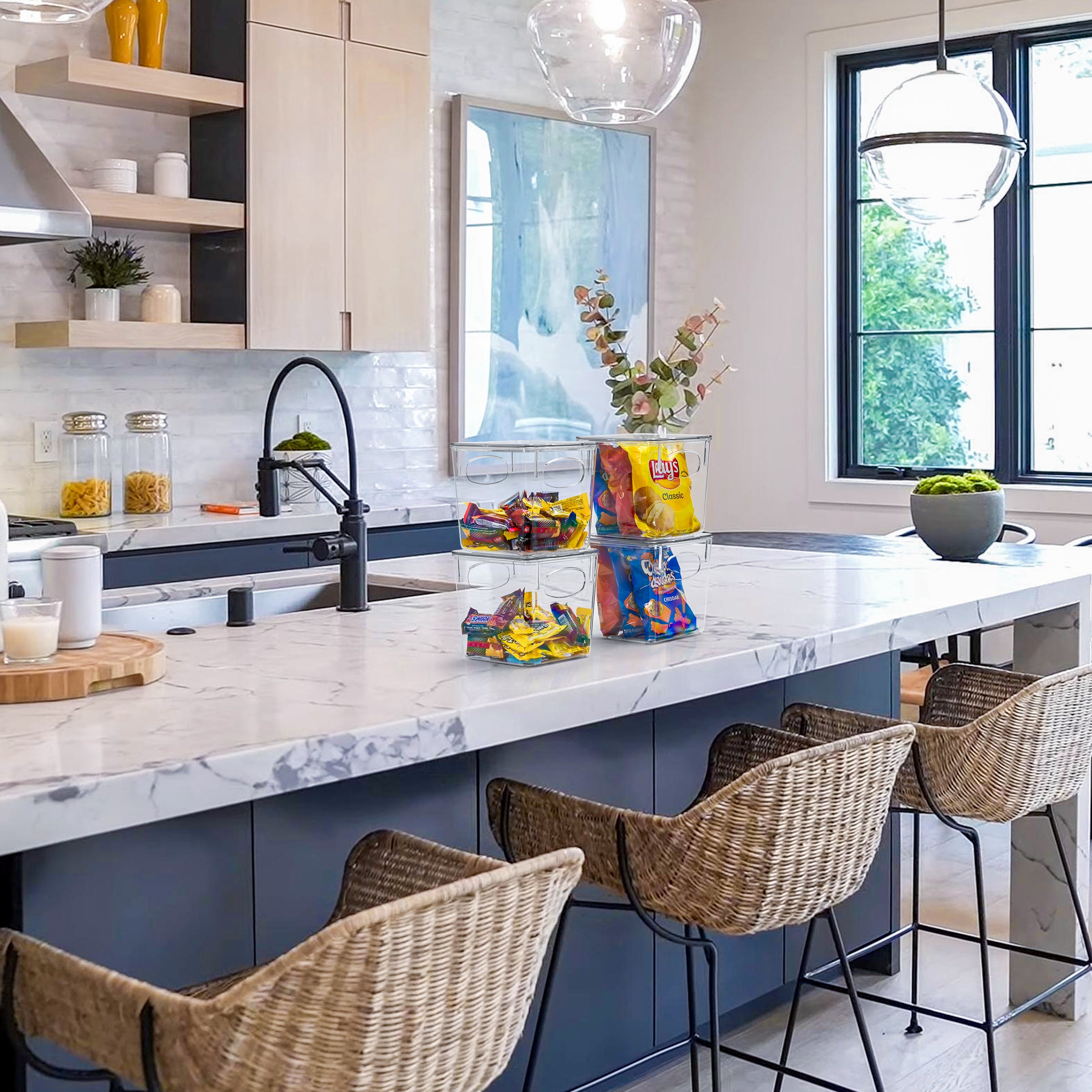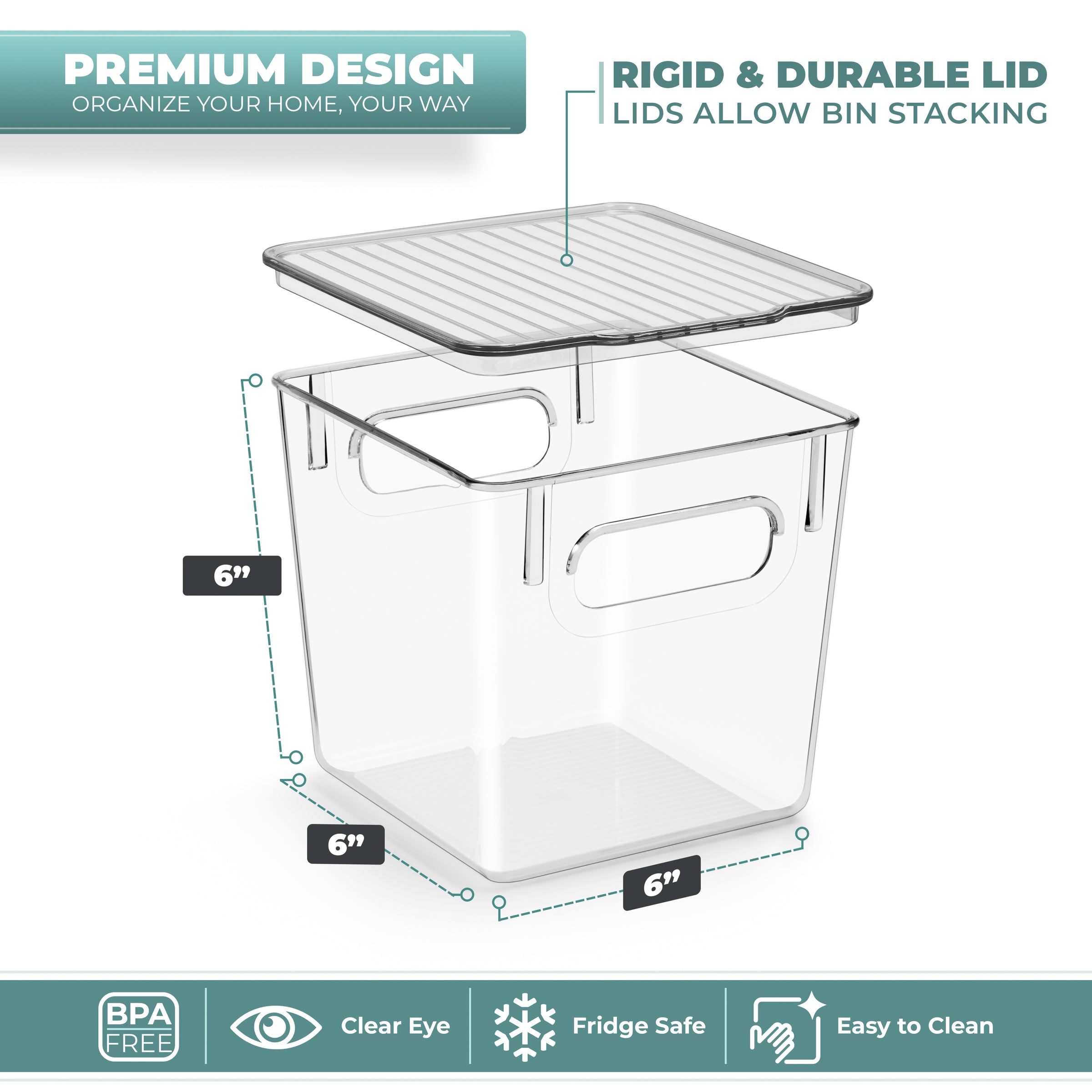 No more searching for that much needed ketchup bottle or juice box! Our Plastic Container Bin Set keeps your kitchen organized with a clear view. A translucent design allows you to quickly see what's stored inside and group contents by type. Store anything from fruits and veggies in the fridge to packaged goods and supplies in the pantry. Built-in handles make it easy to pull off shelves and carry around the home. When paired with included lids, bins stack to maximize space. For versatility, use them without lids as catchalls or convenient drawer organizers. Now go ahead and enjoy your neatly organized space.