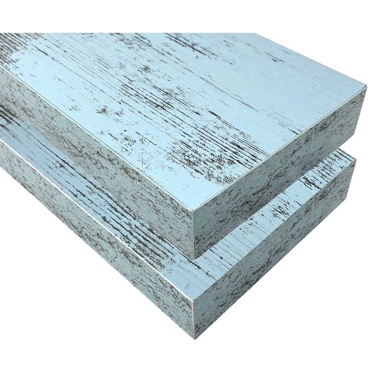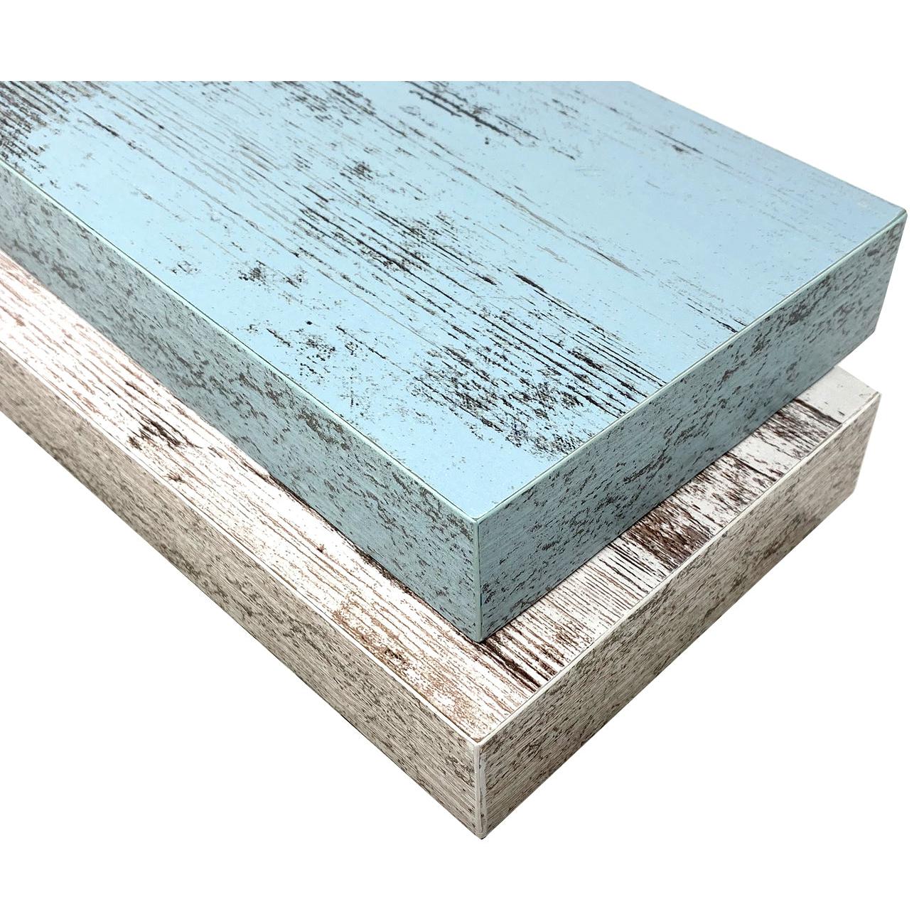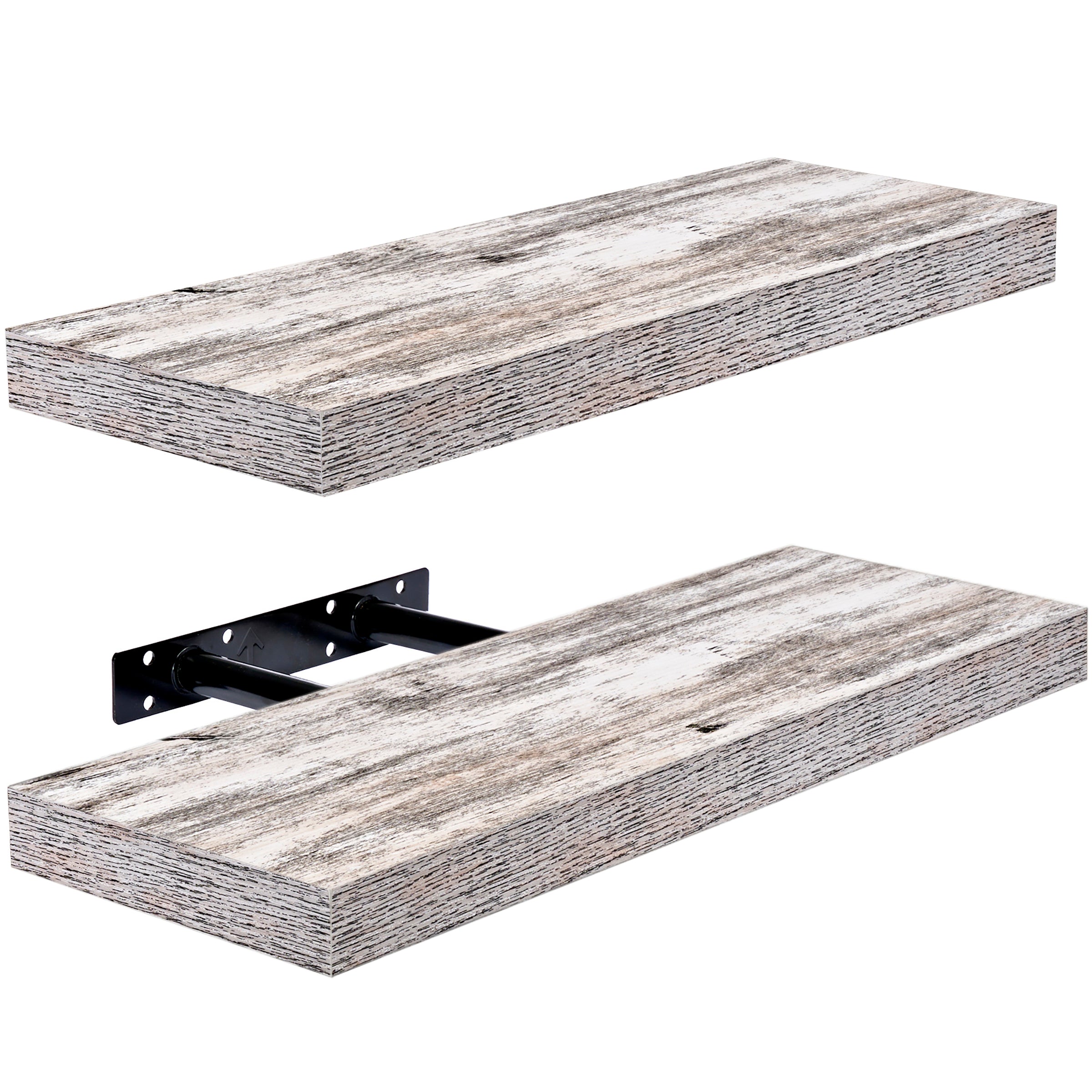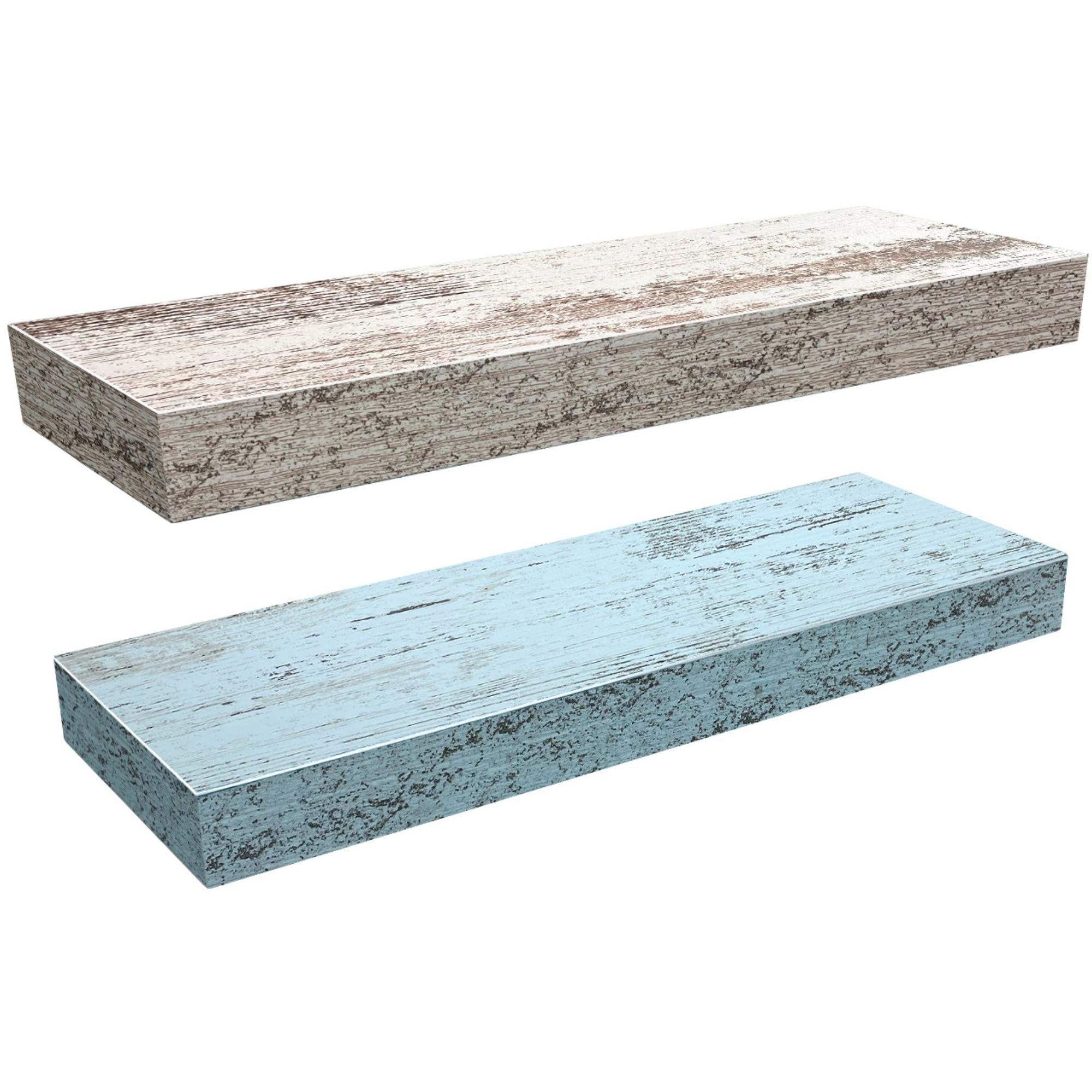 Part rustic, part coastal, this floating shelf duo is the perfect platform for storage and display. It features a rectangle silhouette with a faux wood finish, ideal for showcasing framed photos, succulents, and other home decor. Beautifully accent in your beach home, shabby chic themed space, or modern farmhouse living area. Installation is easy with the included mounting hardware. Hang on an empty wall above a desk, fireplace, between windows, or wherever you need visual interest.