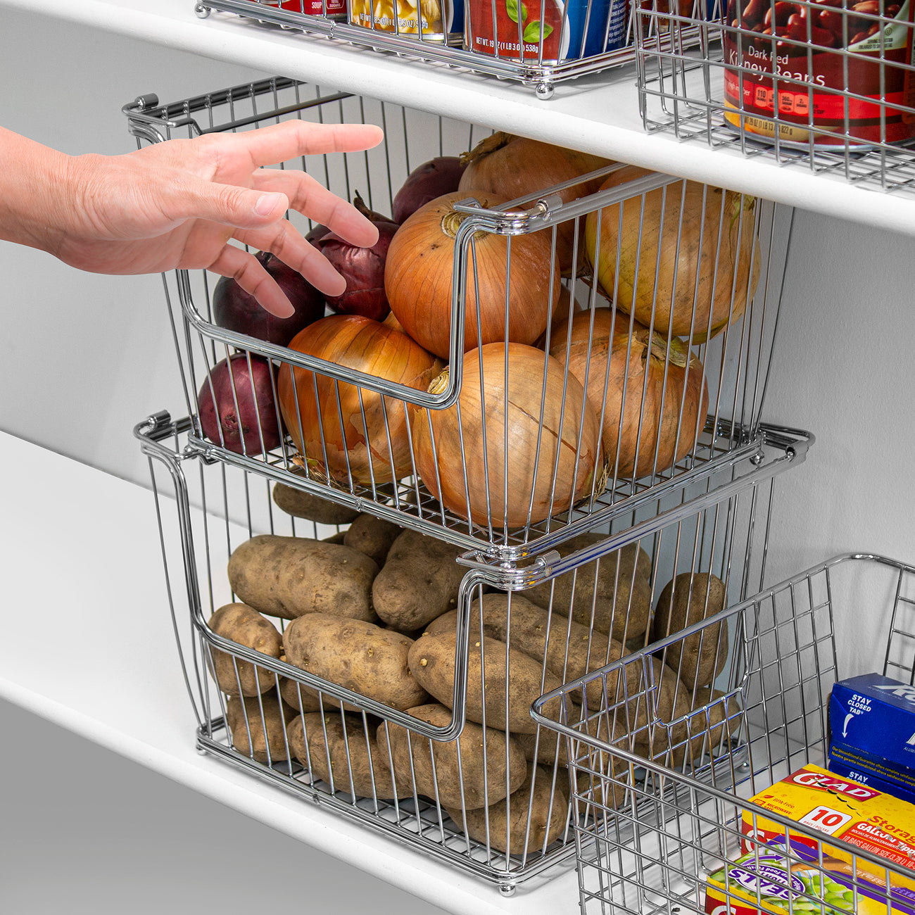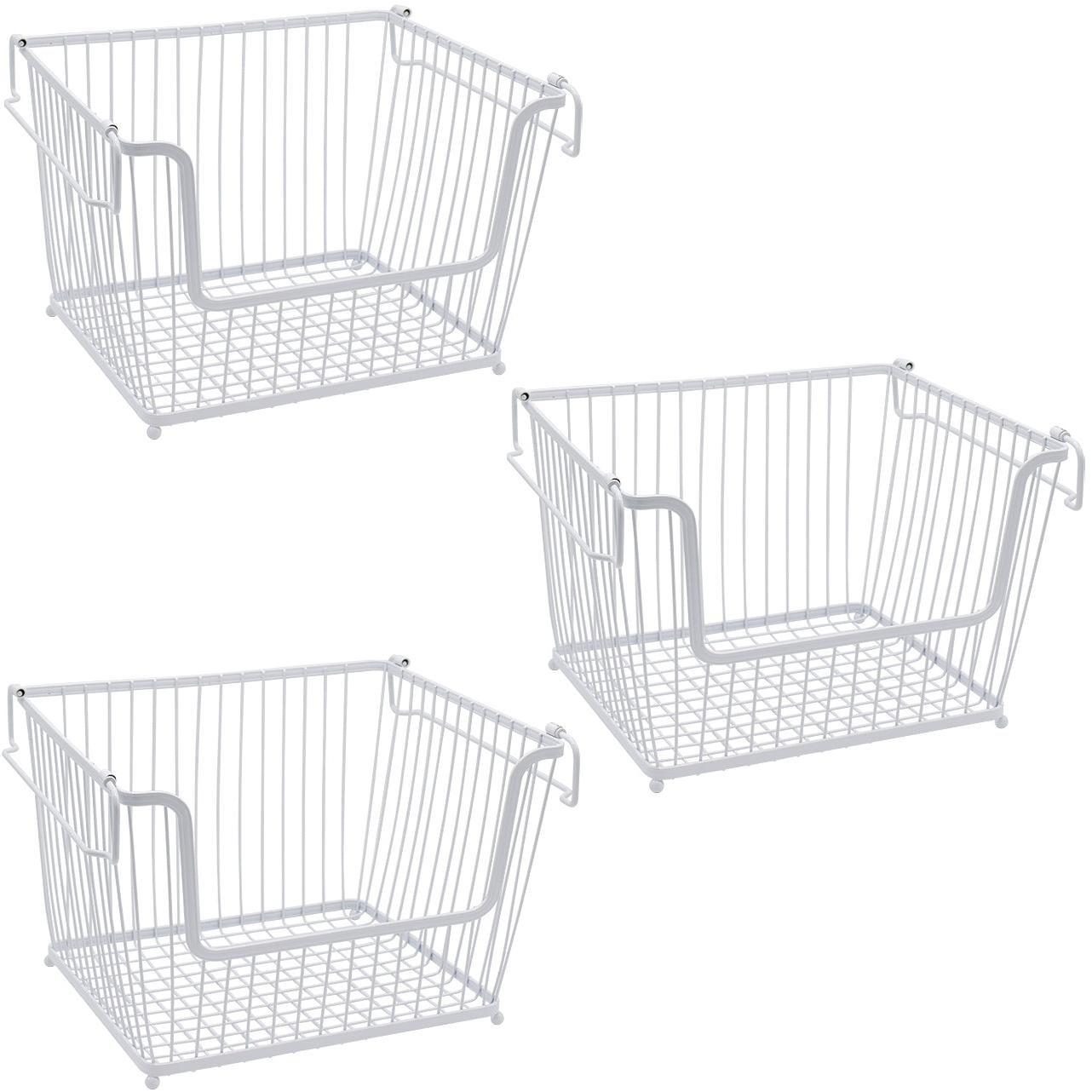 Created with rustic appeal, our stackable farmhouse baskets are great for organizing household items. The open concept design allows you to access anything from produce and pantry staples to linens and laundry supplies. The removable side handles are portable and easy to carry around the home. Simply stack the baskets to maximize vertical space or nest them together when empty. The timeless design pairs beautifully with modern farmhouse, vintage retro, shabby chic home decor, and more.