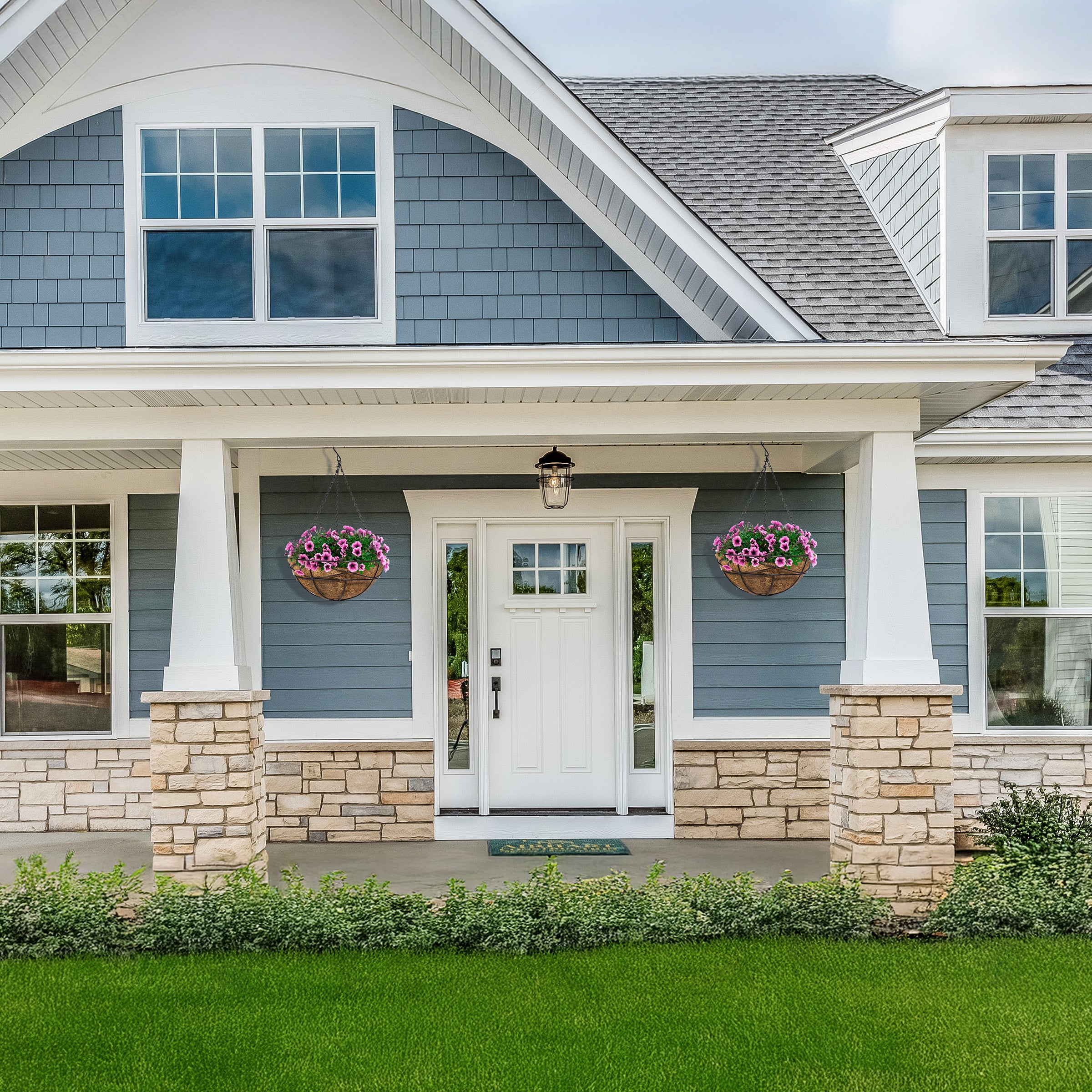 With a traditional look, this hanging planter basket set highlights your favorite plants and flowers with simplistic beauty. Each basket features a circular frame, coconut husk fiber liner, hanging chains, and a secure S-hook for hanging. Home and garden lovers will enjoy quick and easy planting with a few easy steps.