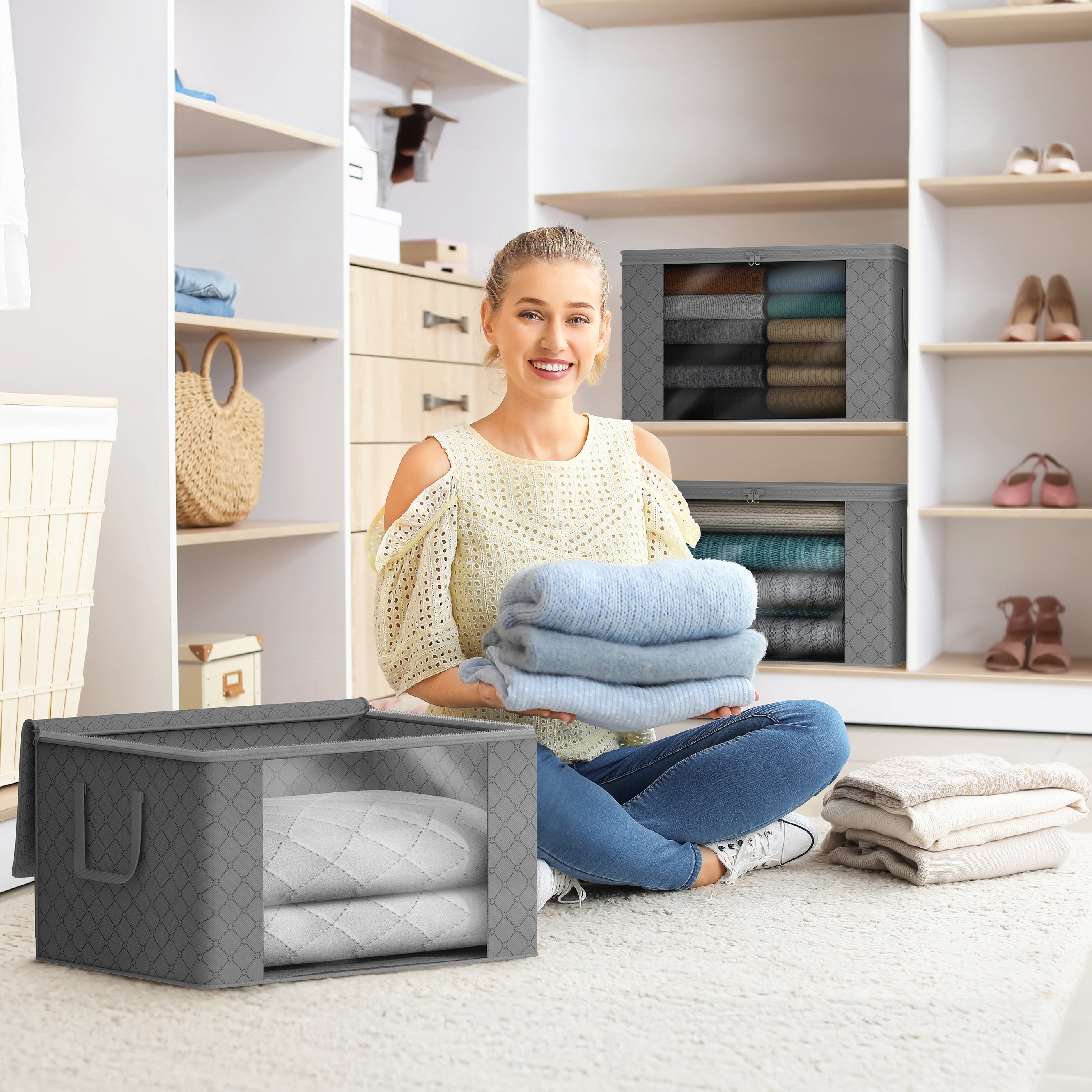 Pack, zip, and transport household essentials with a clear view! The Sorbus Storage Organizer Bags store and protect your seasonal items and apparel. carry handles, and transparent side windows to see contents at a glance. Three generously sized compartments provide plenty of room for clothing storage, blankets, linens, holiday decorations, toys, photos, baby clothes, or to use as saree bags. A fully zippered closure protects from dust, pest, and water damage while securing contents in your home, car, or office. Don’t let limited closet space cramp your style! Store out-of-season or infrequently used items with ease. Traveling or moving? Easy-carry handles make these bags portable and convenient for transporting to new locations. Easily view contents through transparent side windows while packing the car for a long trip or unloading the U-Haul for a seamless move. Breathable fabric protects against dust and pests while allowing airflow to keep items fresh.