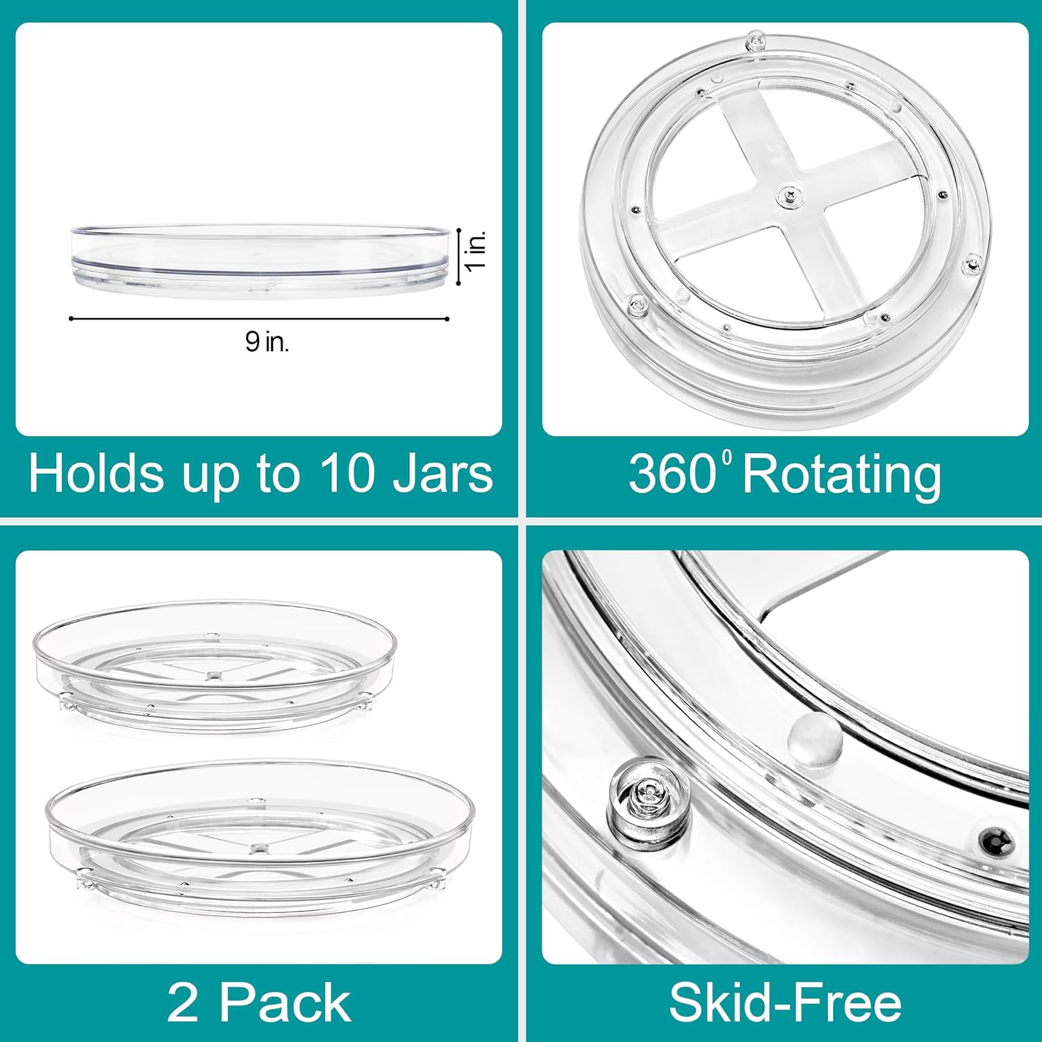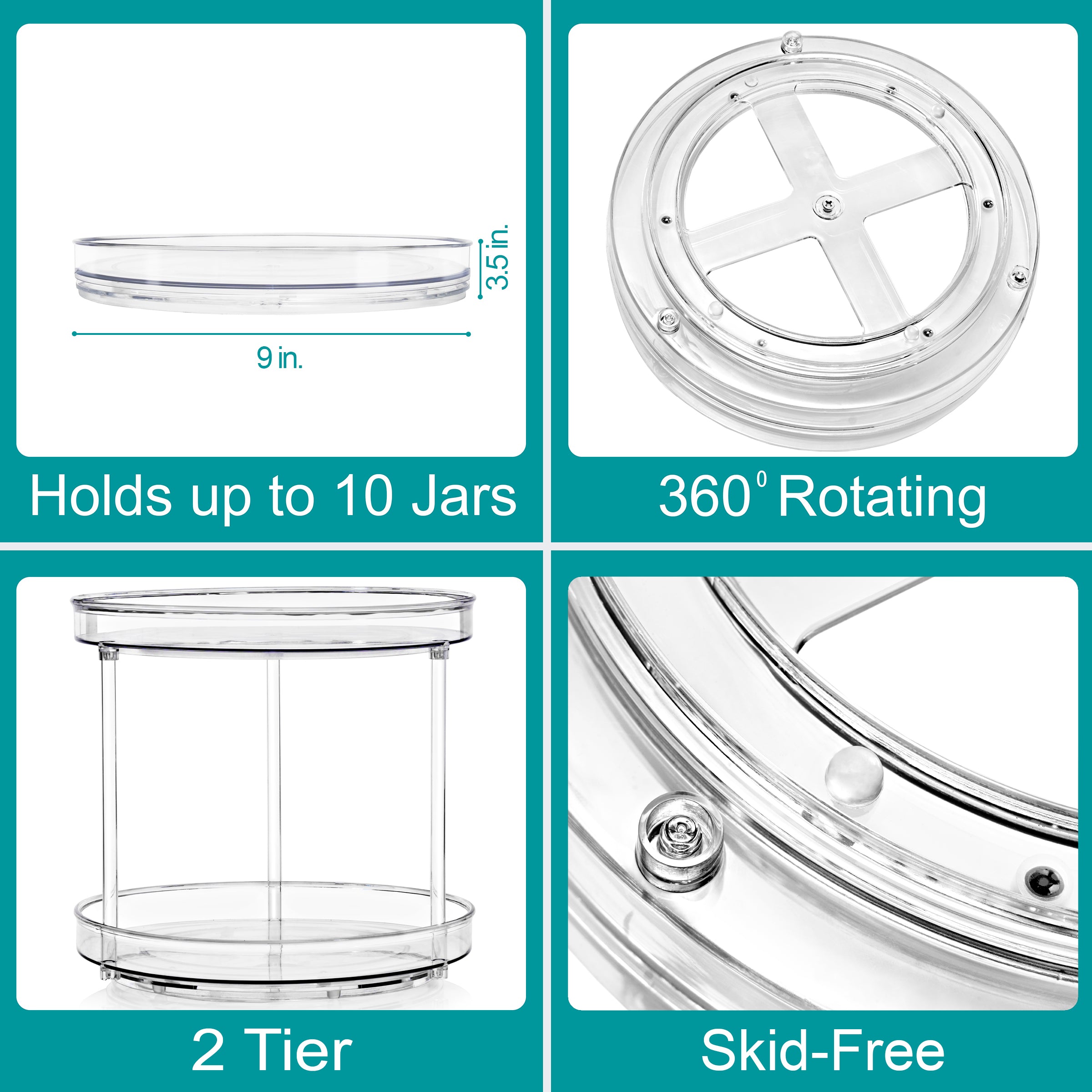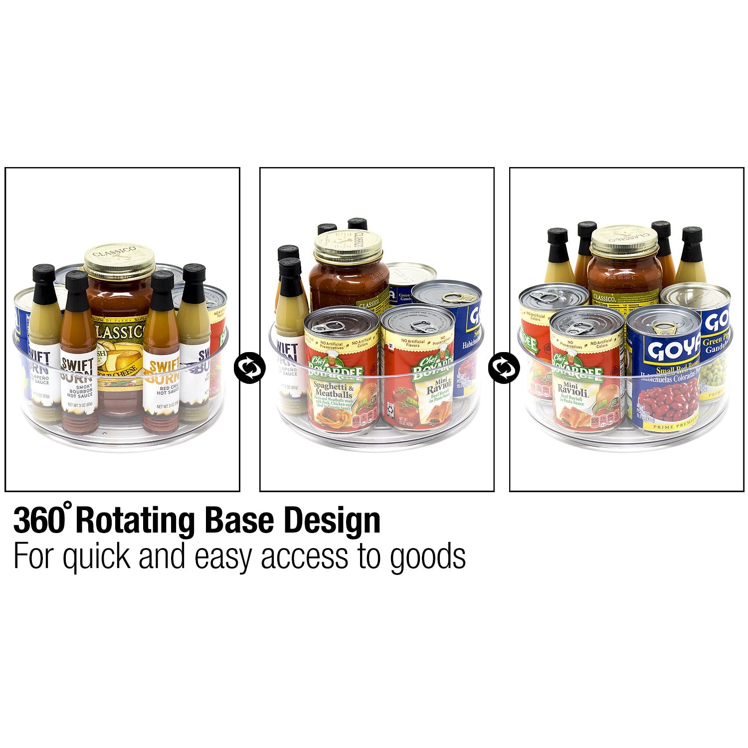 TURN your clutter into organization with these Lazy Susan Bins! Whether for spices, snacks, or bathroom supplies, this rotating organizer keeps your household items neat and accessible. With a quick spin, grab what you need without digging through cluttered shelves! The transparent look provides a clear view while the deep design keeps tall items contained without tipping over. Store inside pantry cabinets, under-the-sink, or on countertops to bring convenience to your home.