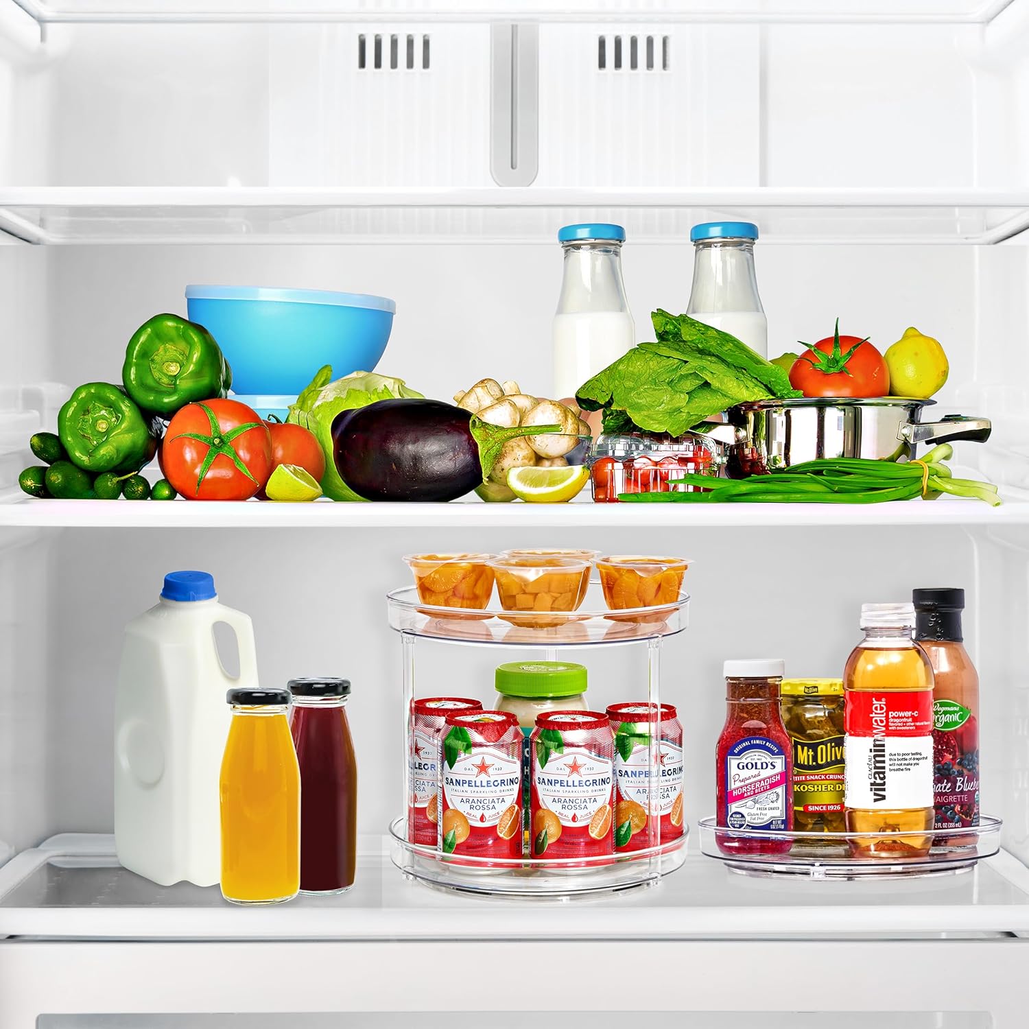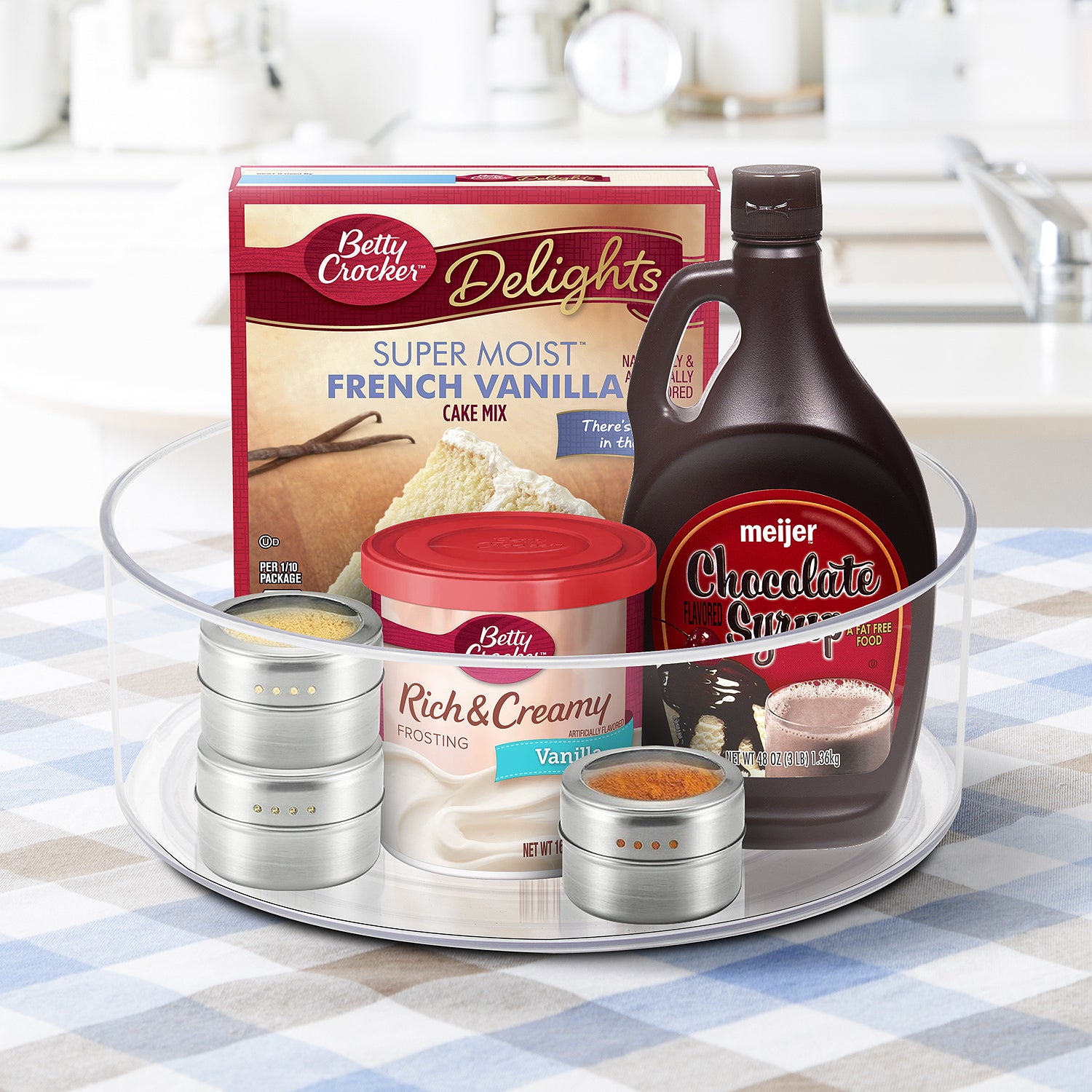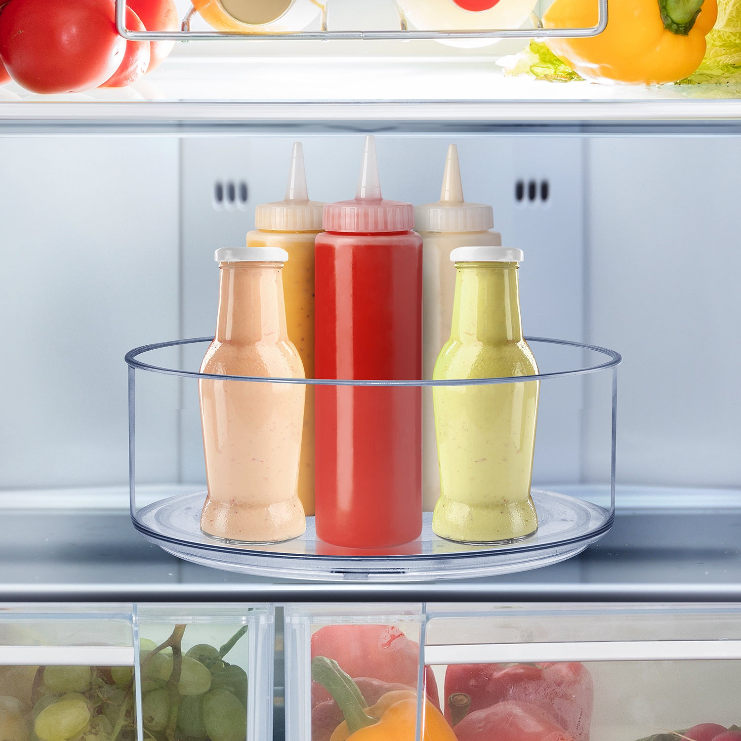 TURN your clutter into organization with these Lazy Susan Bins! Whether for spices, snacks, or bathroom supplies, this rotating organizer keeps your household items neat and accessible. With a quick spin, grab what you need without digging through cluttered shelves! The transparent look provides a clear view while the deep design keeps tall items contained without tipping over. Store inside pantry cabinets, under-the-sink, or on countertops to bring convenience to your home.