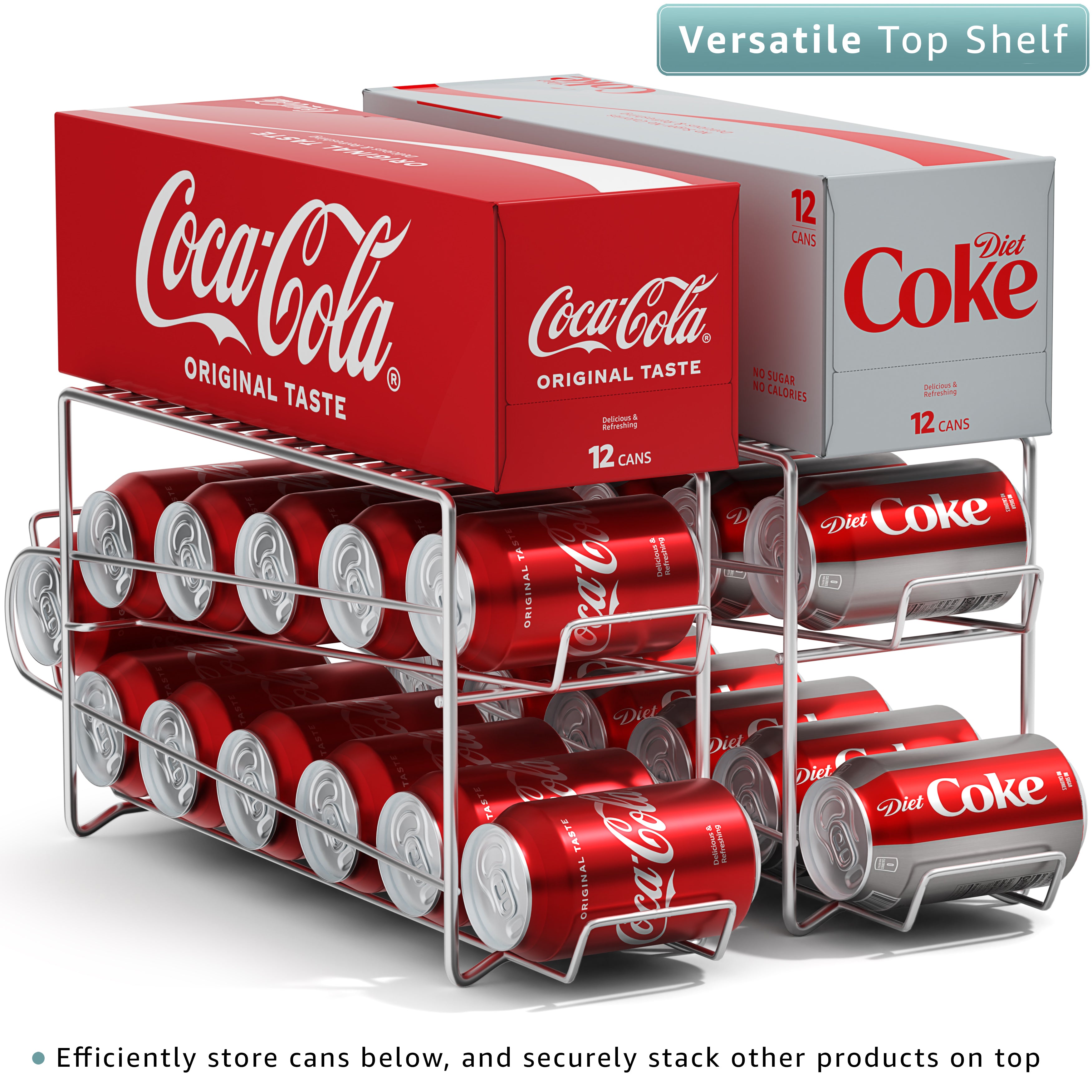 There's always time for a refreshing drink a 2-Tier Soda Can Dispenser 2 Pack! It holds 12 soda cans each rack and a total of 24 for set of 2, that quickly dispense your favorite chilled drink. Cans gently roll forward as you use them, giving you easy grab n go access. For versatility, stock it with canned soup, vegetables, fruit, and more! The two-tier design can be placed in your refrigerator, cabinet, or pantry for everyday use or drink table for special occasions like parties and picnics! The slim design maximizes your available storage space while keeping drinks easily accessible.