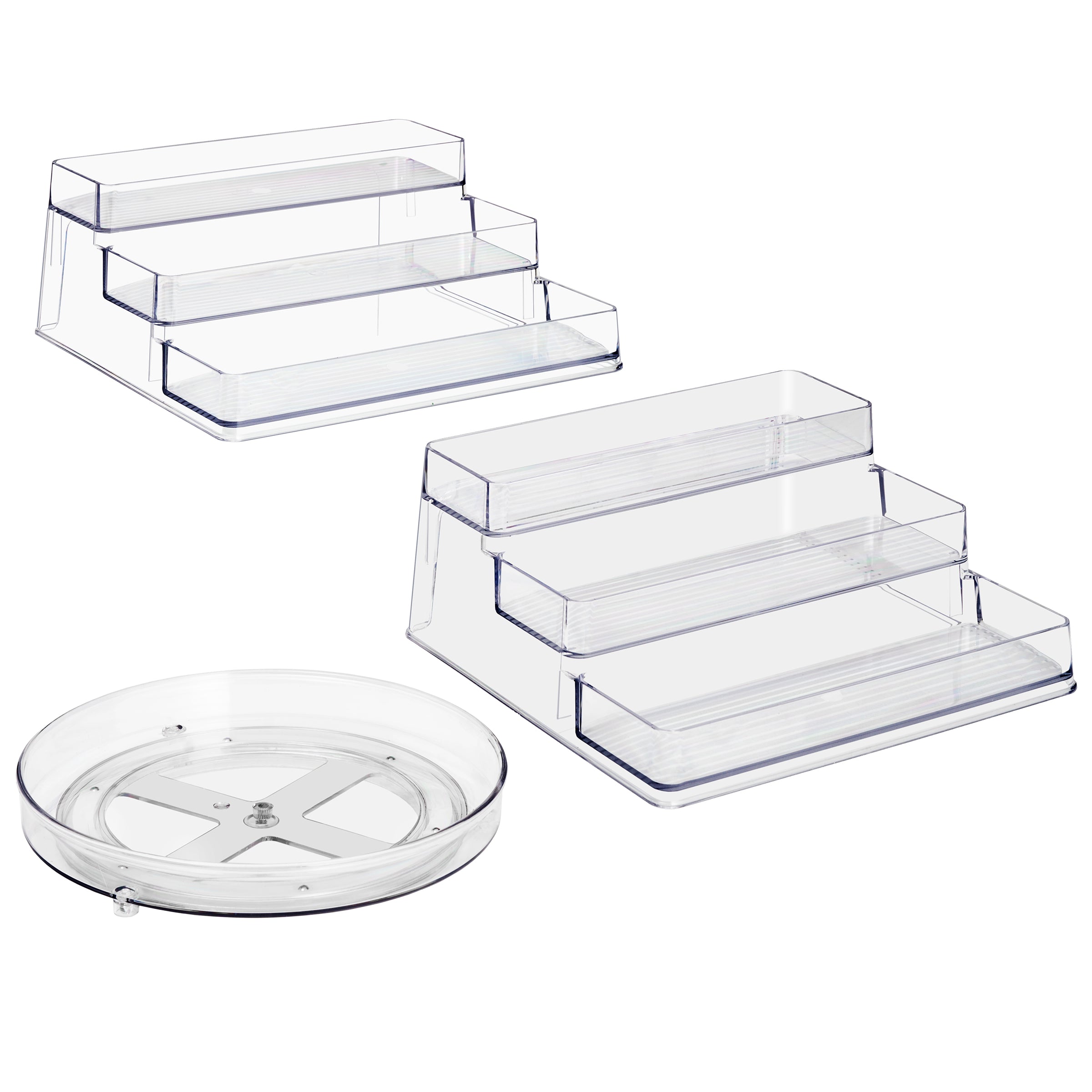 The Sorbus Acrylic Spice Organizer Set offers comprehensive kitchen organization with two 3-tier spice racks and a 9-inch lazy Susan turntable. The 3-tier spice rack shelves are crafted from durable acrylic, perfect for showcasing spices or condiments in your pantry. Meanwhile, the compact yet spacious lazy Susan fits neatly in cabinets or refrigerators, serving as a versatile organizer for spices, condiments, or various kitchen essentials. Beyond spices, this set can tidy up baking supplies or kitchen utensils with ease.