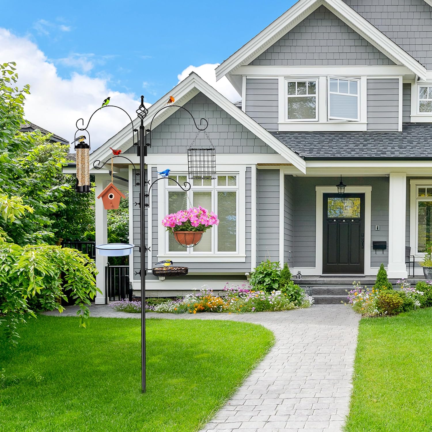This all-in-one bird feeder holder has everything you need to attract birds and decorate your garden. It keeps the birds happy all season long by simply adding seeds for finches, hummingbirds, woodpeckers and more.