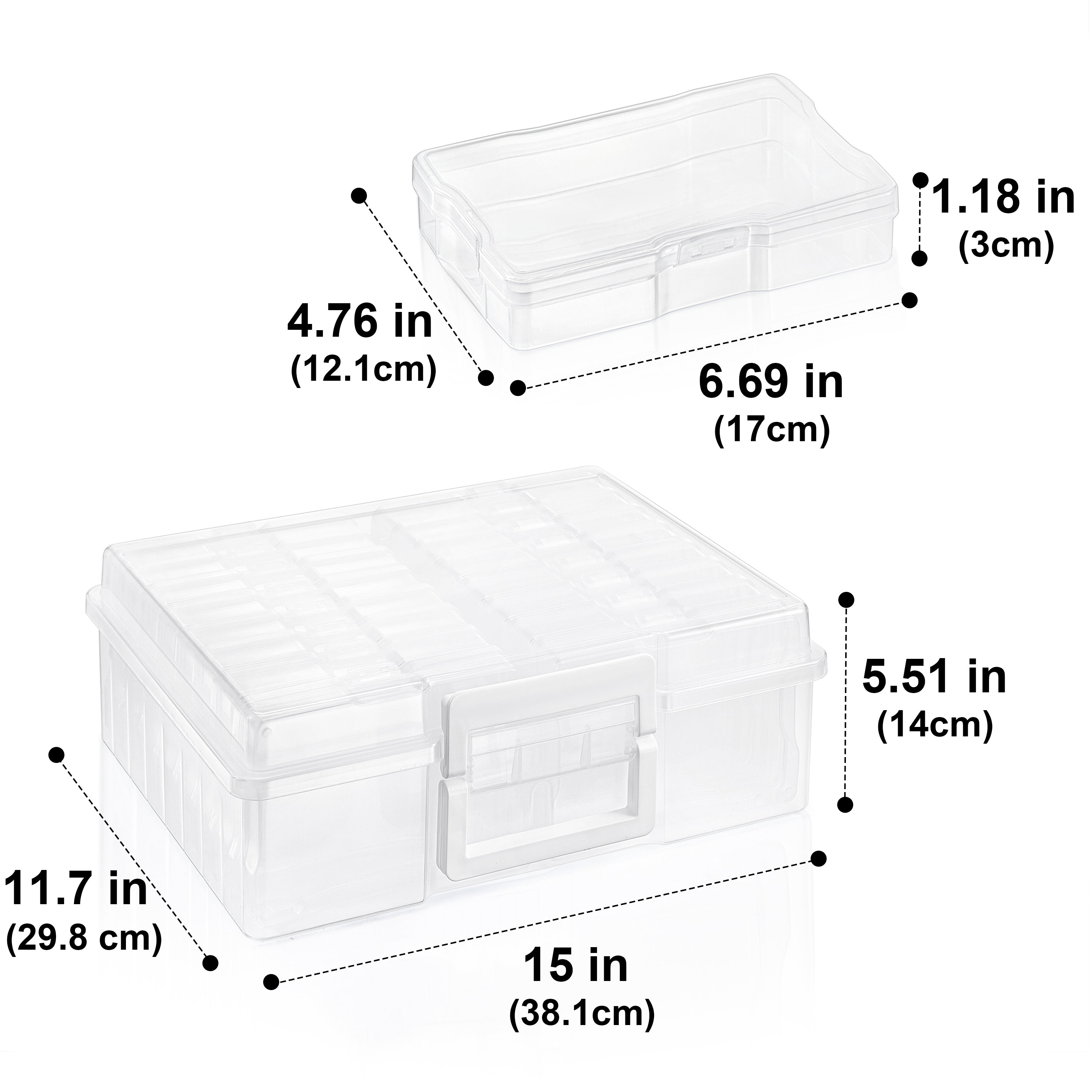 Organize and protect your memories with the Sorbus Clear Durable Box. This versatile storage system holds up to 1600 (4x6) photos in 16 clear cases. It's perfect for photos, crafts, and more. The durable, clear design lets you easily find what you need. With a sturdy handle and stackable design, this box is your ultimate storage solution.