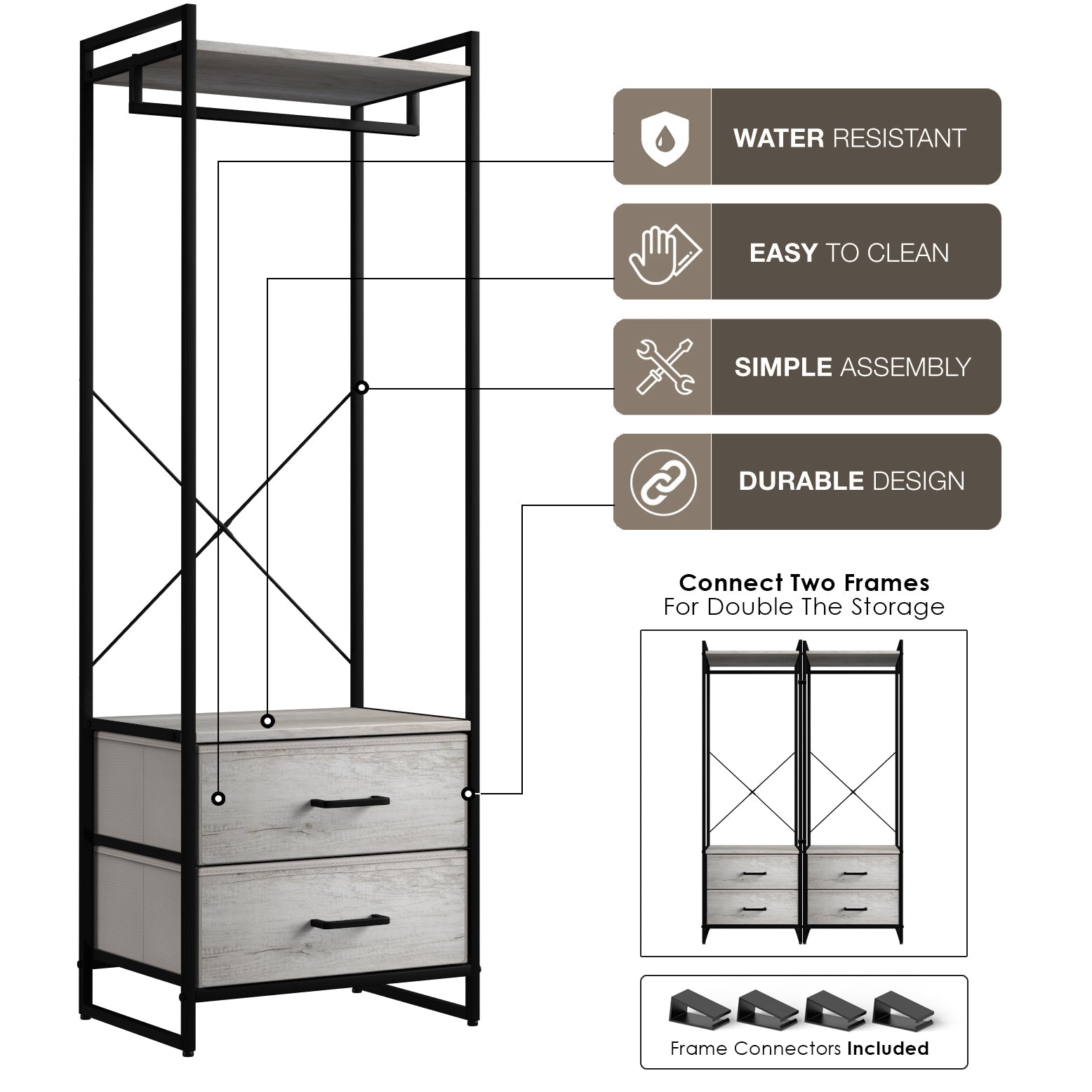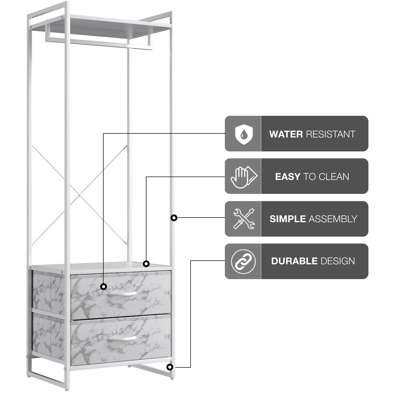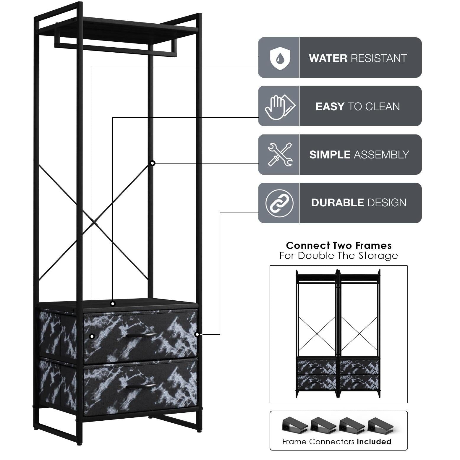 If your closet is overflowing or you have daily pieces that you want to display, the Sorbus Clothing Rack Dresser is the extension to your closet you've always needed. This garment rack will store and display your shirts, jackets, shorts, jeans, dresses, pants, costumes, and more. The clothing rack is both lightweight and sturdy, making it easy to move this freestanding closet organizer from room to room.