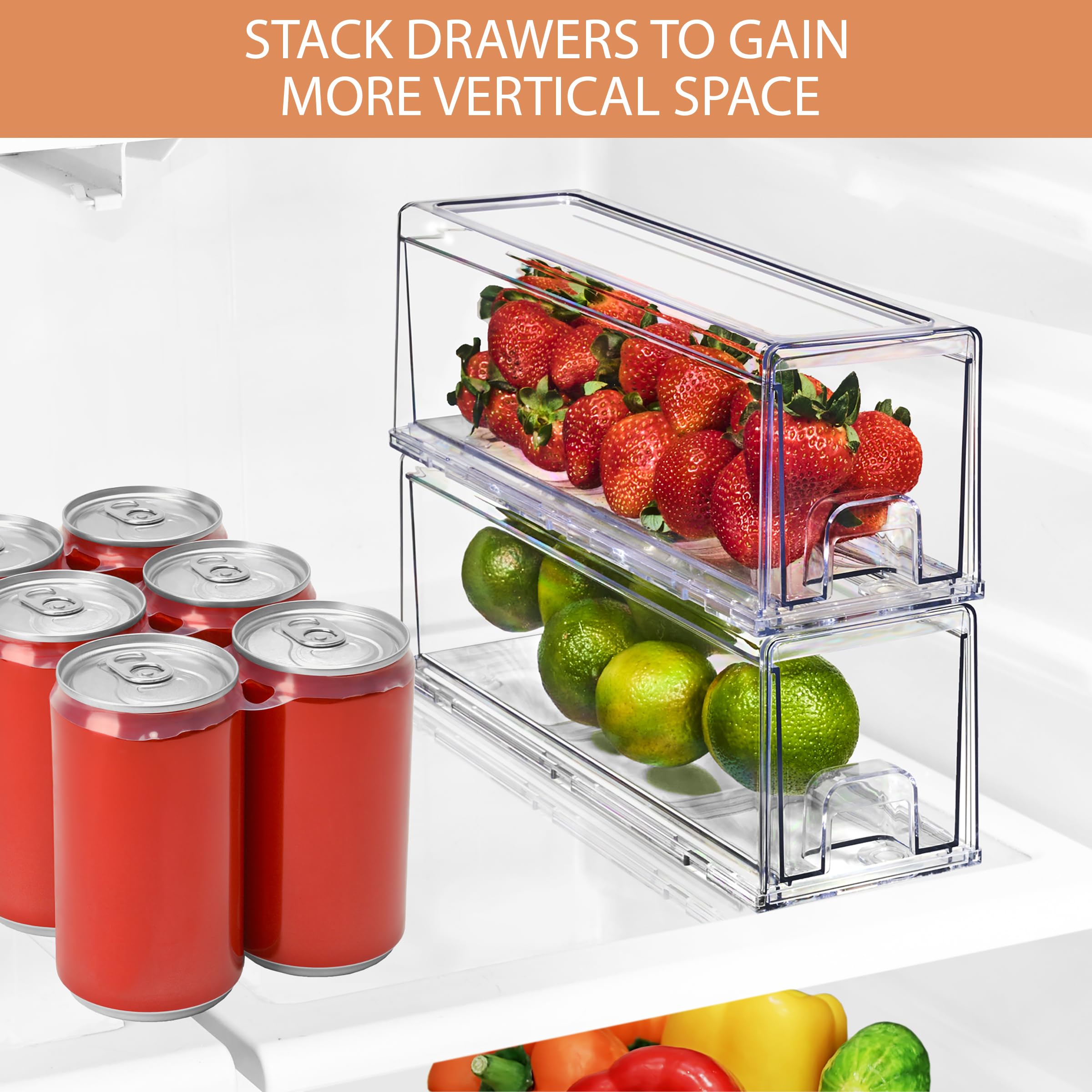 If you have trouble organizing what's inside your refrigerator or putting your food to use before it goes bad, these clear storage drawers will allow you to easily see all of your groceries, so no snack gets left behind. Categorize your groceries for no-brainer access to your treats. Sorbus Clear Storage Drawers are easy to clean, sturdy, and versatile. Organize your fruits, vegetables, snacks, cold cuts, eggs, cheese, dairy, meat, and more. Your refrigerator will never look better.