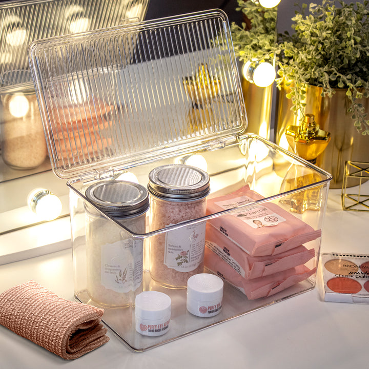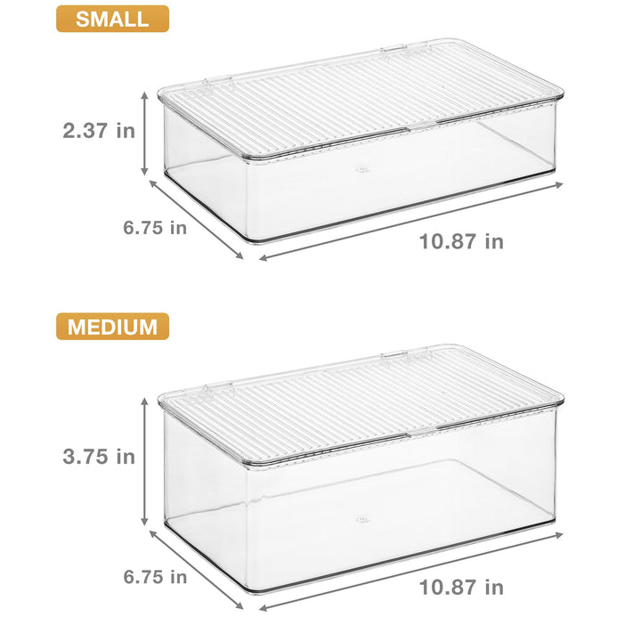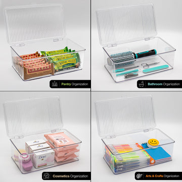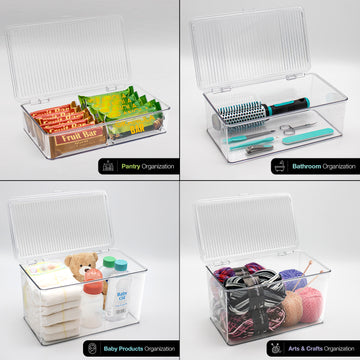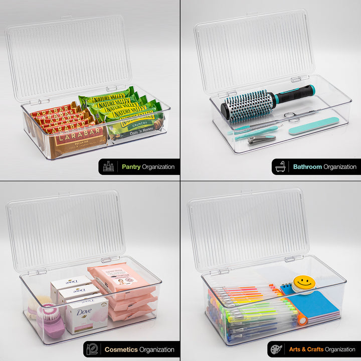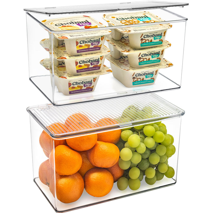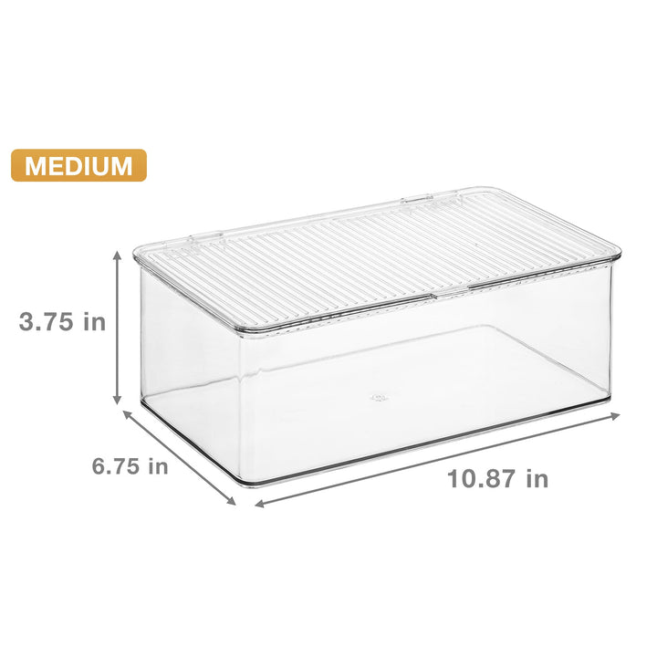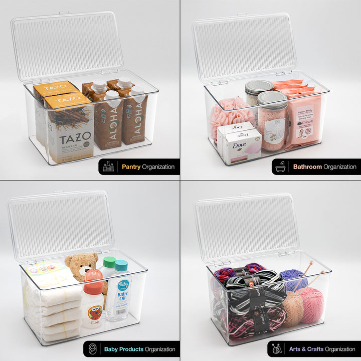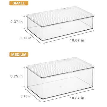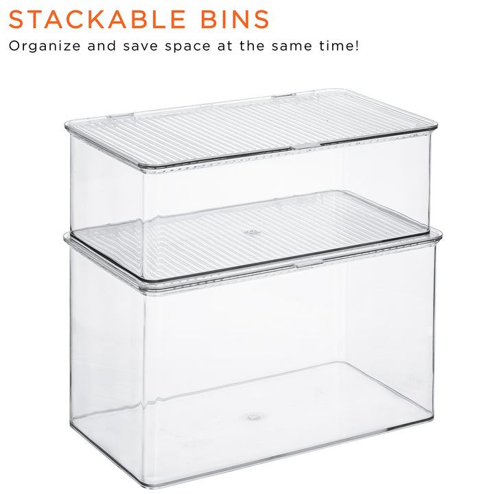 The Sorbus Storage Bins with Lids are the ultimate storage solution for your refrigerator, bath and pantry. Free up valuable space in your home by stacking these storage bins to gain vertical organization. Categorize your groceries, pantry and more items quickly and easily.