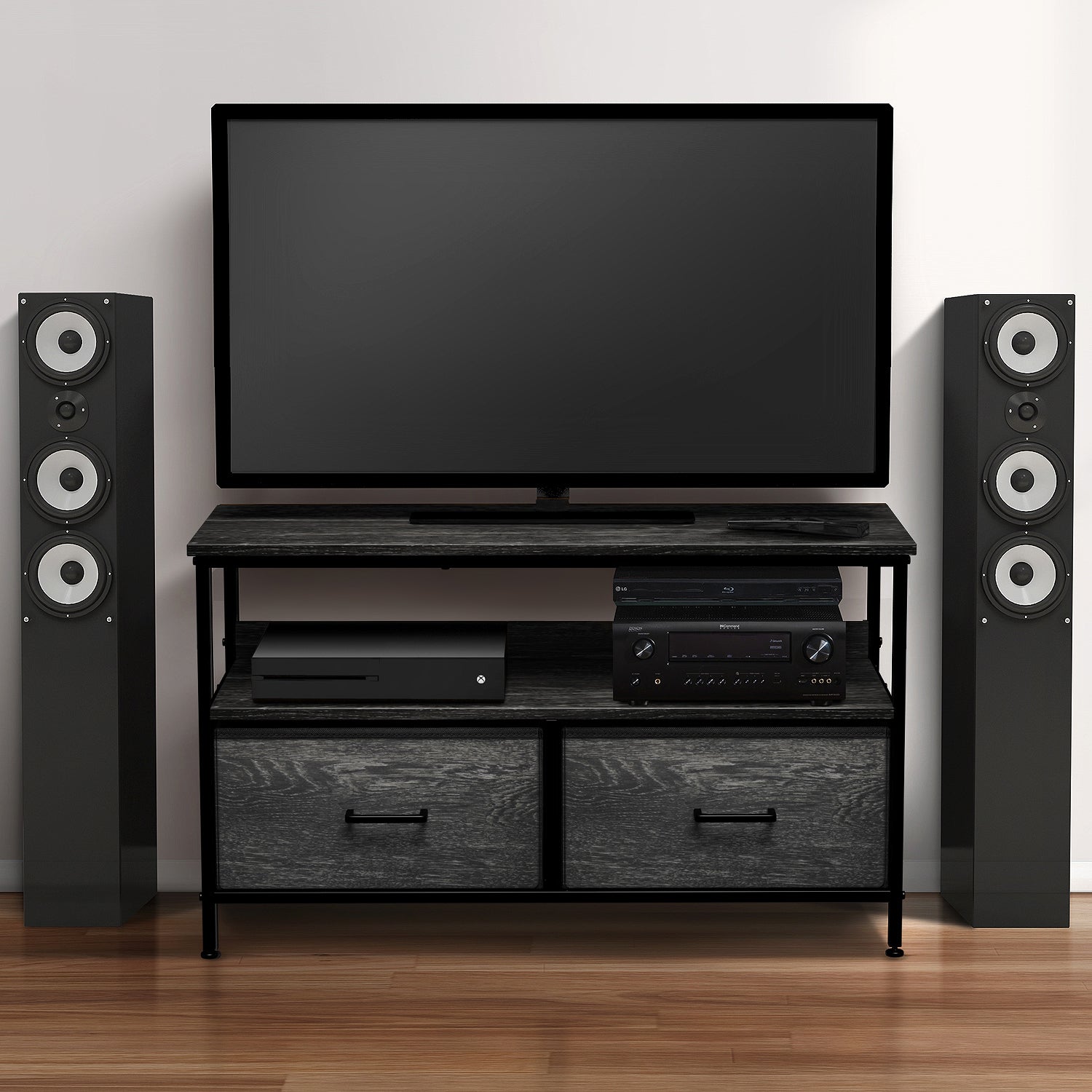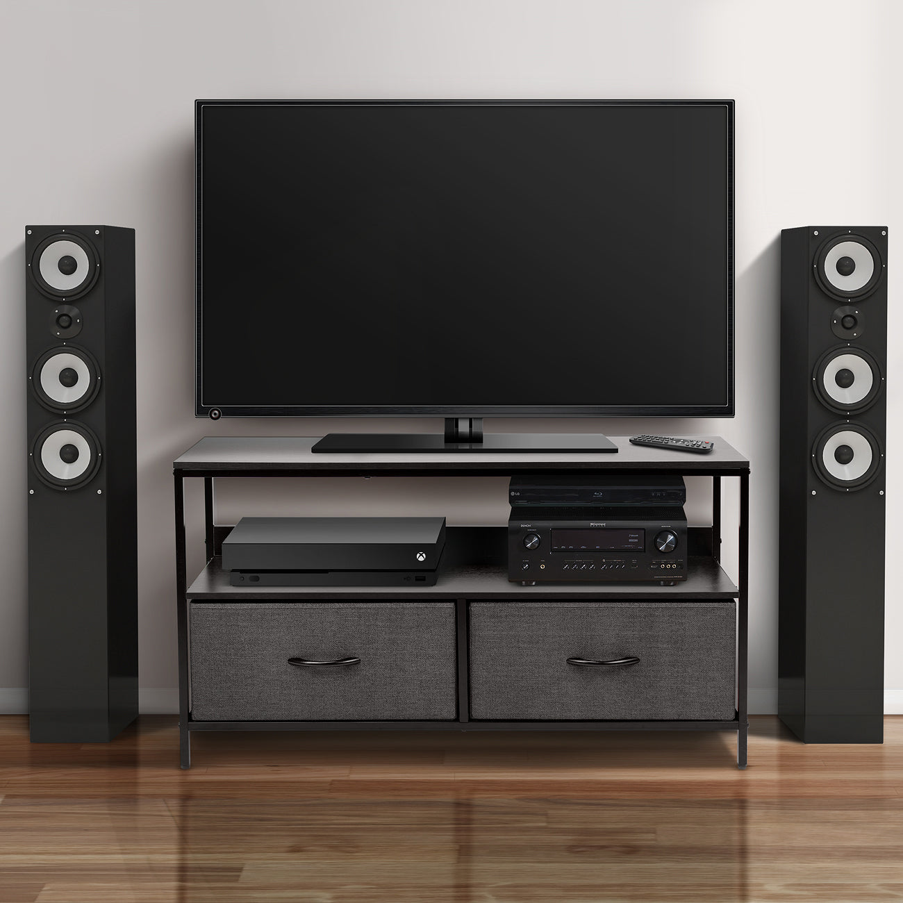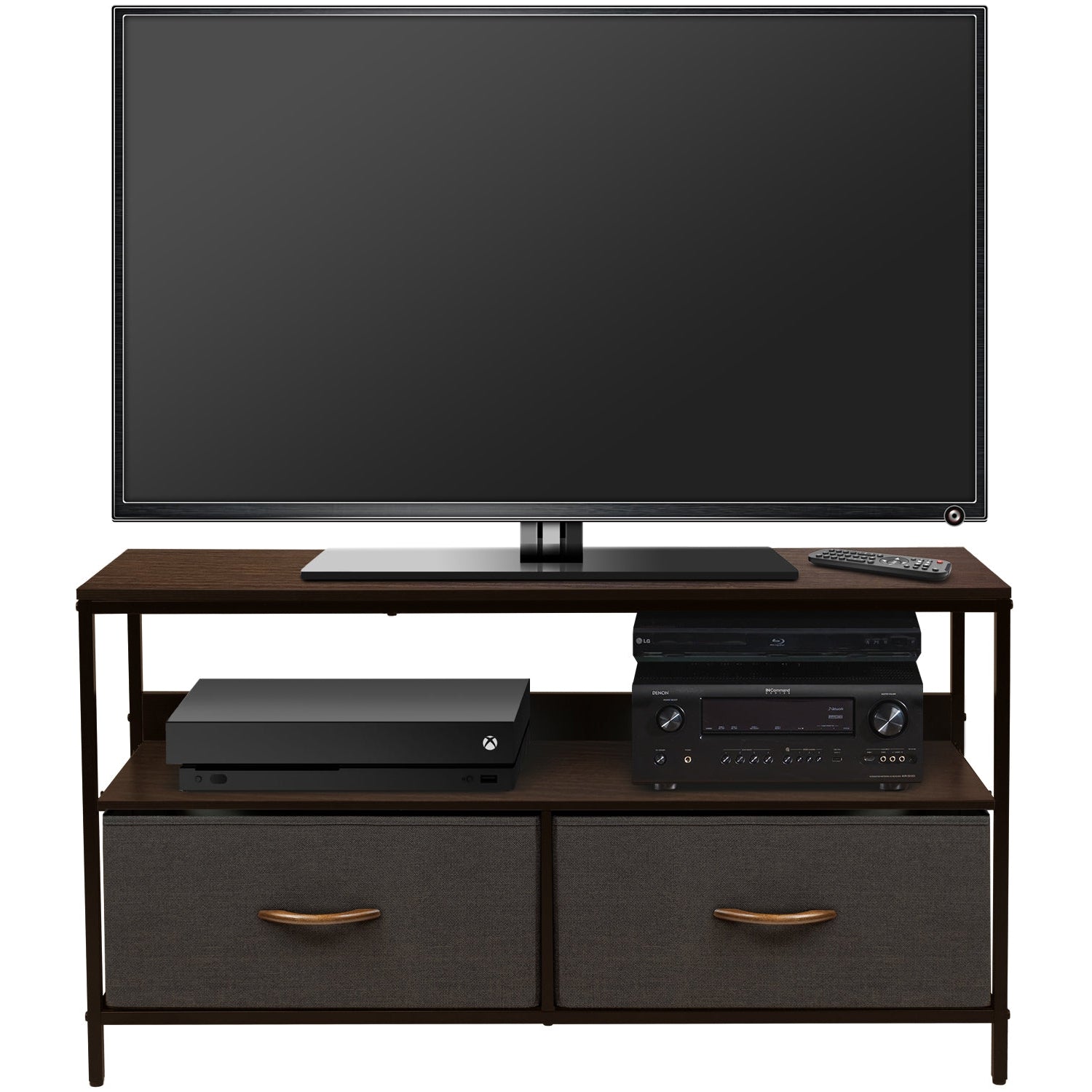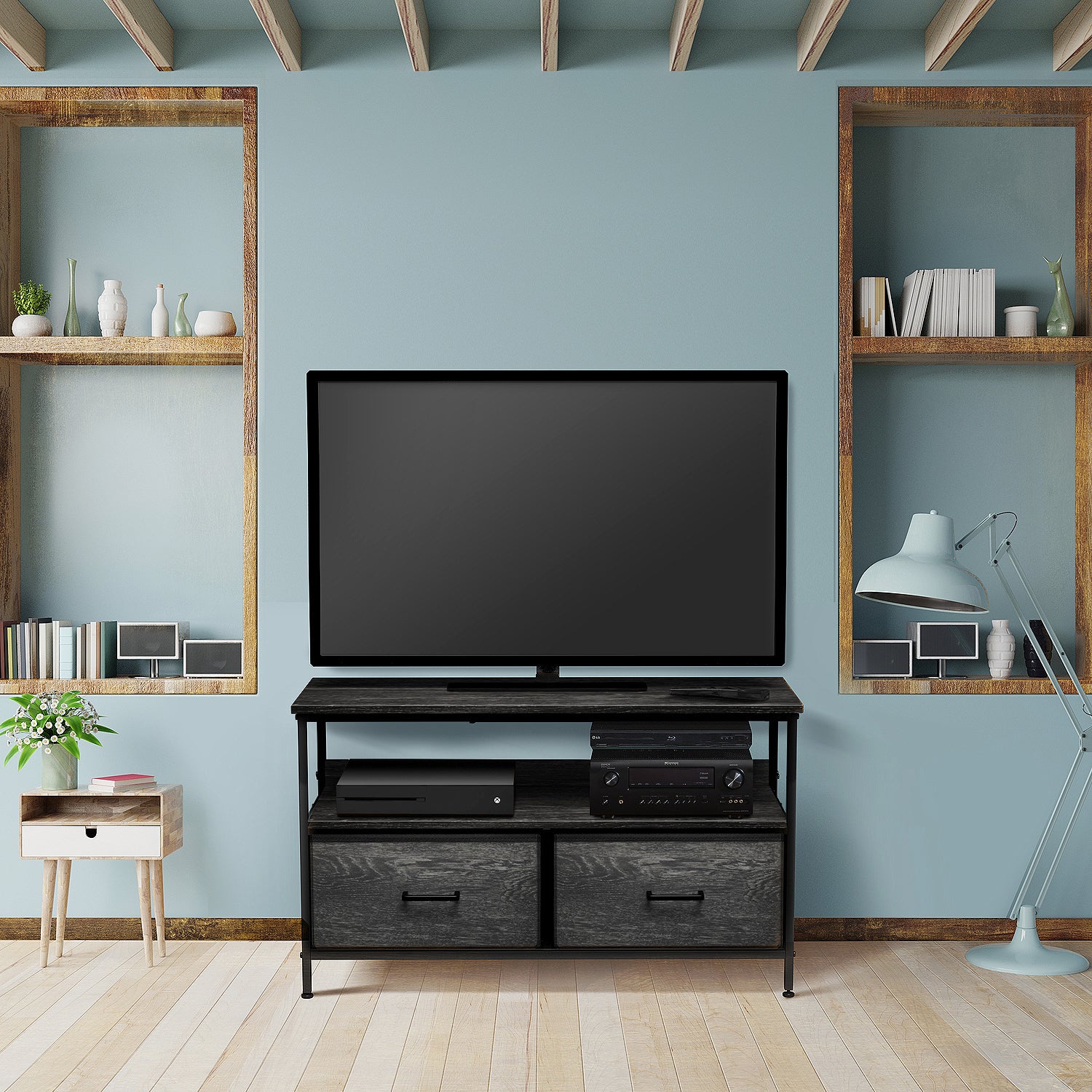 Organize and entertain with our TV Dresser Stand! Sleek and minimal, it features a faux wood top surface and strong steel frame. Two drawers pull out to reveal all your gadgets or everyday household items. Place anywhere from your living room, bedroom, or college dorm to get organized in style. The lightweight frame makes this unit easy to transport and when not in use, simply fold the fabric drawers flat for storage. Use alone or pair with similar styles from the Sorbus Furniture Collection.