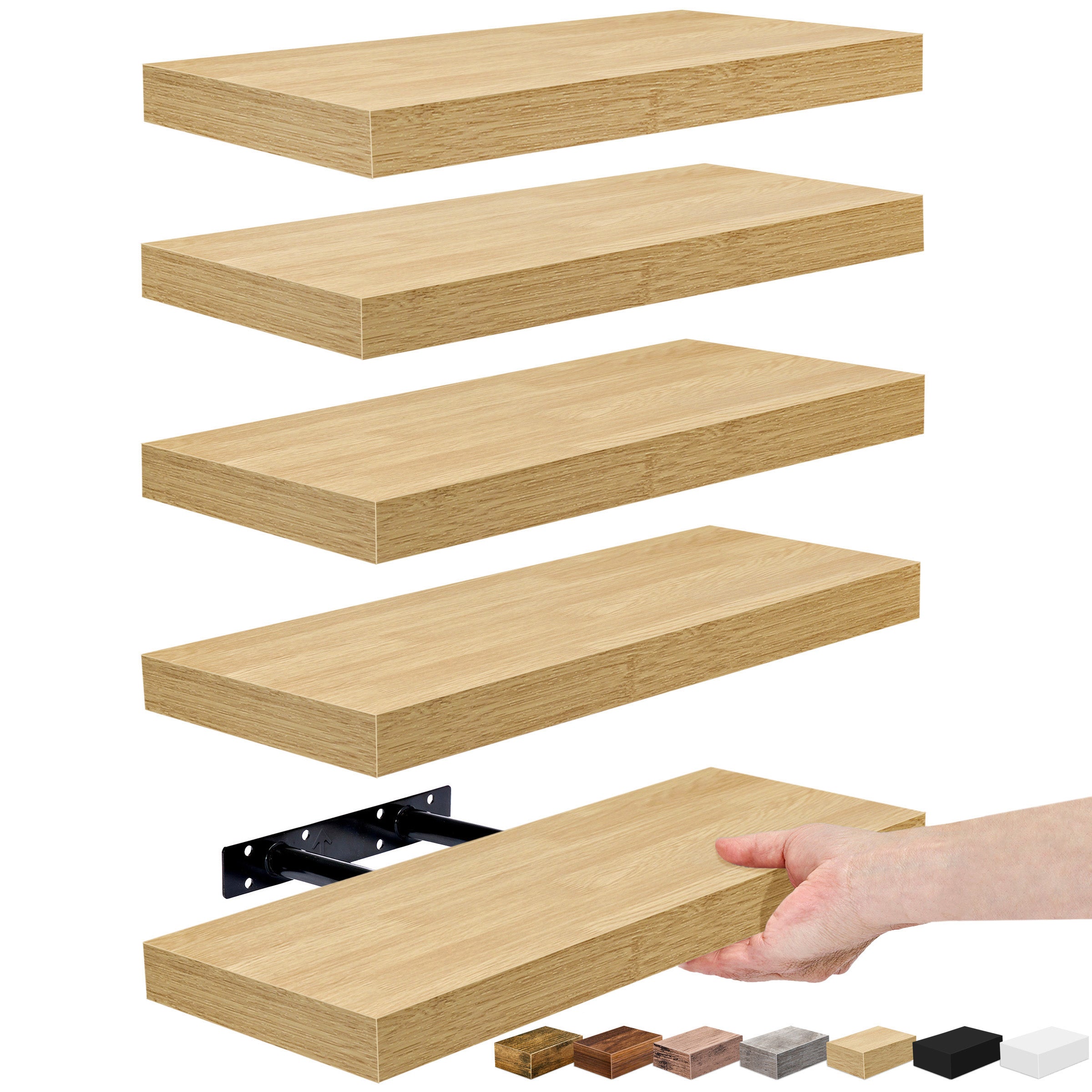 Floating shelves for wall storage offer a stylish and functional way to display showpieces, home decor items, and other prized possessions. Measuring approximately 16.25 in. W x 5.50 in. D and 1.5 in H. Thick, these shelves free up floor space while reducing clutter and highlighting wall decor in compact spaces. Suitable for any home style, from modern to farmhouse, they can be used in various rooms, including bedrooms, living rooms, bathrooms, and kitchens. These versatile shelves can be mounted at staggering heights for an energetic look or side-by-side for a clean, streamlined appearance, enhancing decor above desks, fireplaces, entryways, and more.