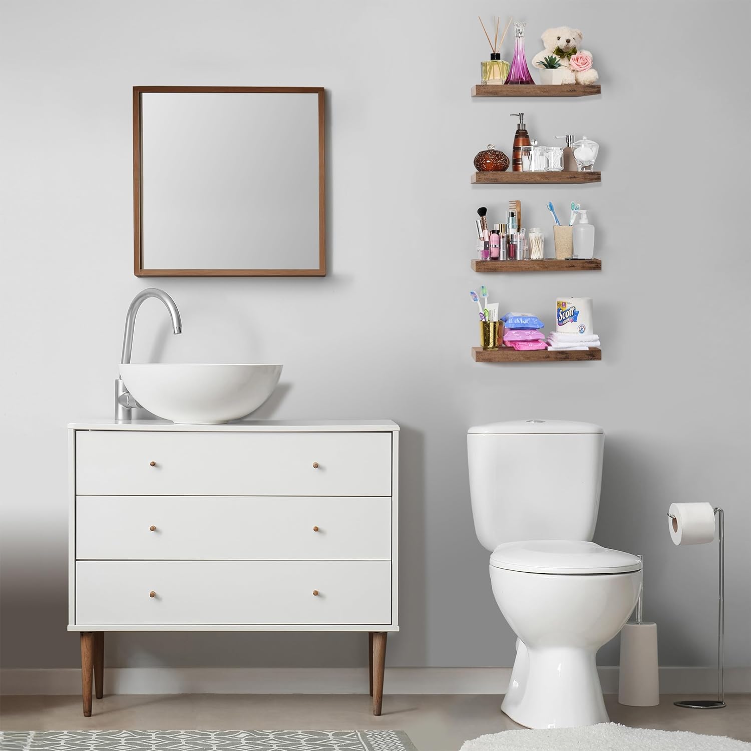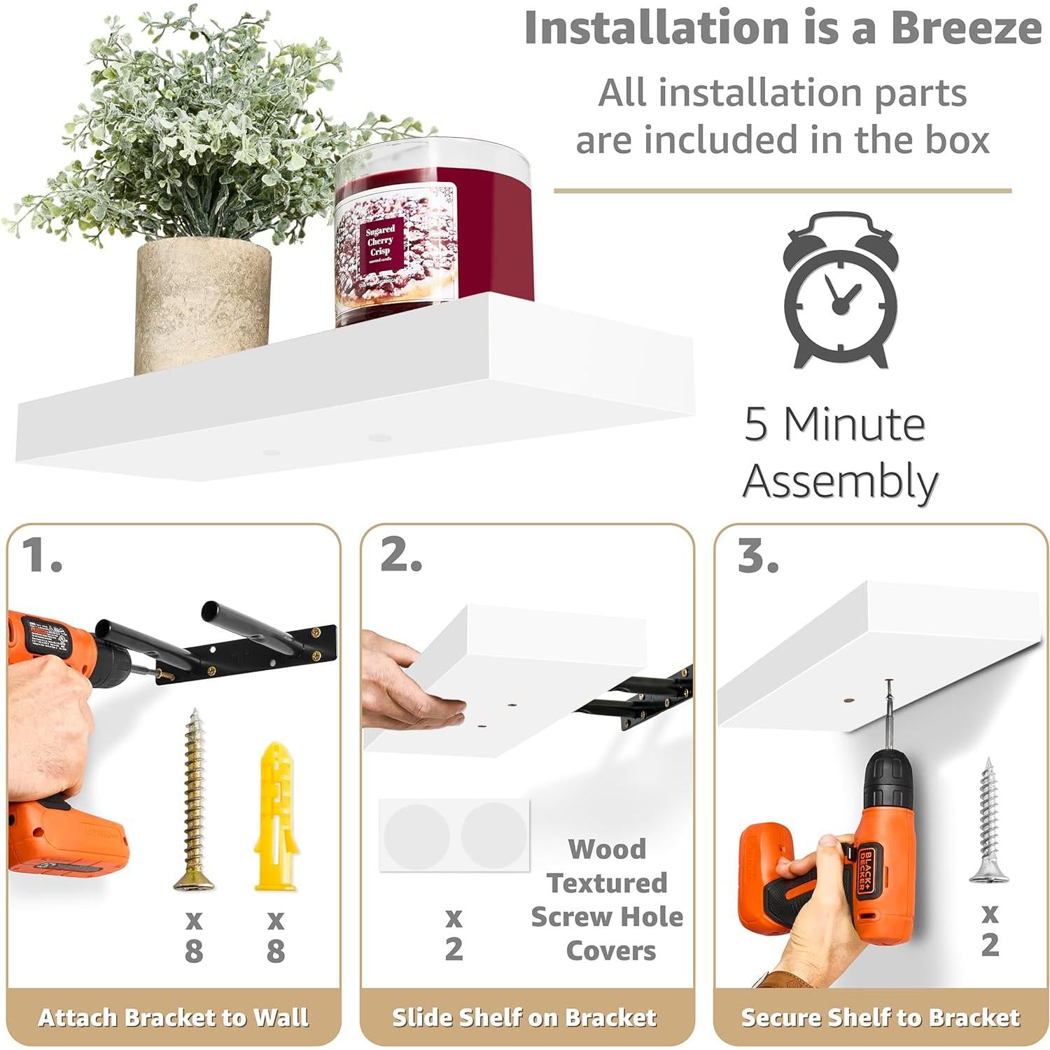 Enhance your home's style and functionality effortlessly with Sorbus Floating Shelves. These versatile faux wood shelves add character to any space: above a desk, fireplace, or in the bathroom. Install shelves vertically for a streamlined look or stagger them for visual interest. They're perfect for displaying prized possessions, toiletries, or kitchen essentials. Easy to install and clean, these shelves are a practical yet artistic addition to any home. Perfect for a housewarming present!